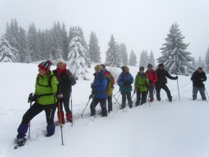7 dames et 3 hommes sont bien décidés à aller découvrir ce qui les attend. La neige tombe de plus en plus drue ! Pas âme qui vive au parking des 3 Cheminées.