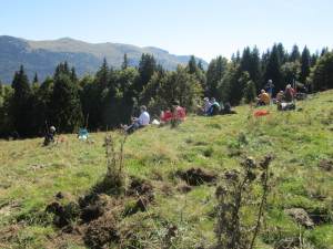 Combe des Closettes, pique nique proche des ruines de L’Allaquet, quelle terrasse ! Tous les sommets de la Haute Chaine sont sous nos yeux !
