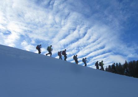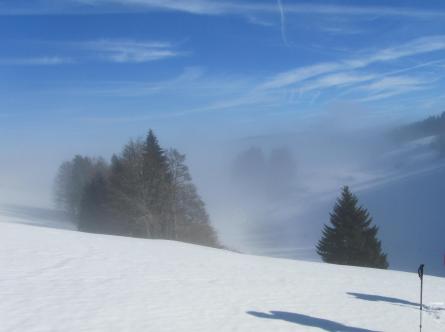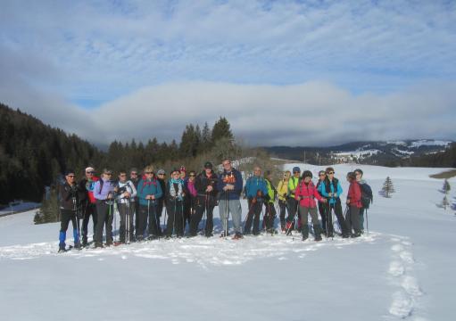 La neige faisant défaut, cette rando se déplacera un peu plus loin, un peu plus haut… 17 dames et 7 hommes sont prêts à partir à travers bois et clairières, en suivant une piste … ou pas !! Le soleil est déjà là, une légère brume enveloppe le paysage, créant une ambiance un peu énigmatique !!