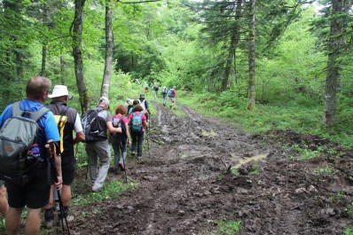 Des chemins forestiers plutôt gras, une belle crête ( sans visibilité malheureusement), une montée « sévère », des fleurs par milliers, des escargots partout, et une très belle ambiance tout au long de la journée!!