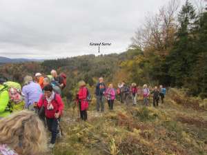 Ca ne rebute pas les 23 randonneurs ( euses … encore en grosse majorité ). L’échauffement est rapide.. dès les premières pentes en direction de Grand Serve. Deuxième passage en peu de temps pour quelques uns sur le sentier des crêtes et ses points de vue ; mais aujourd’hui le panorama est « bouché ».