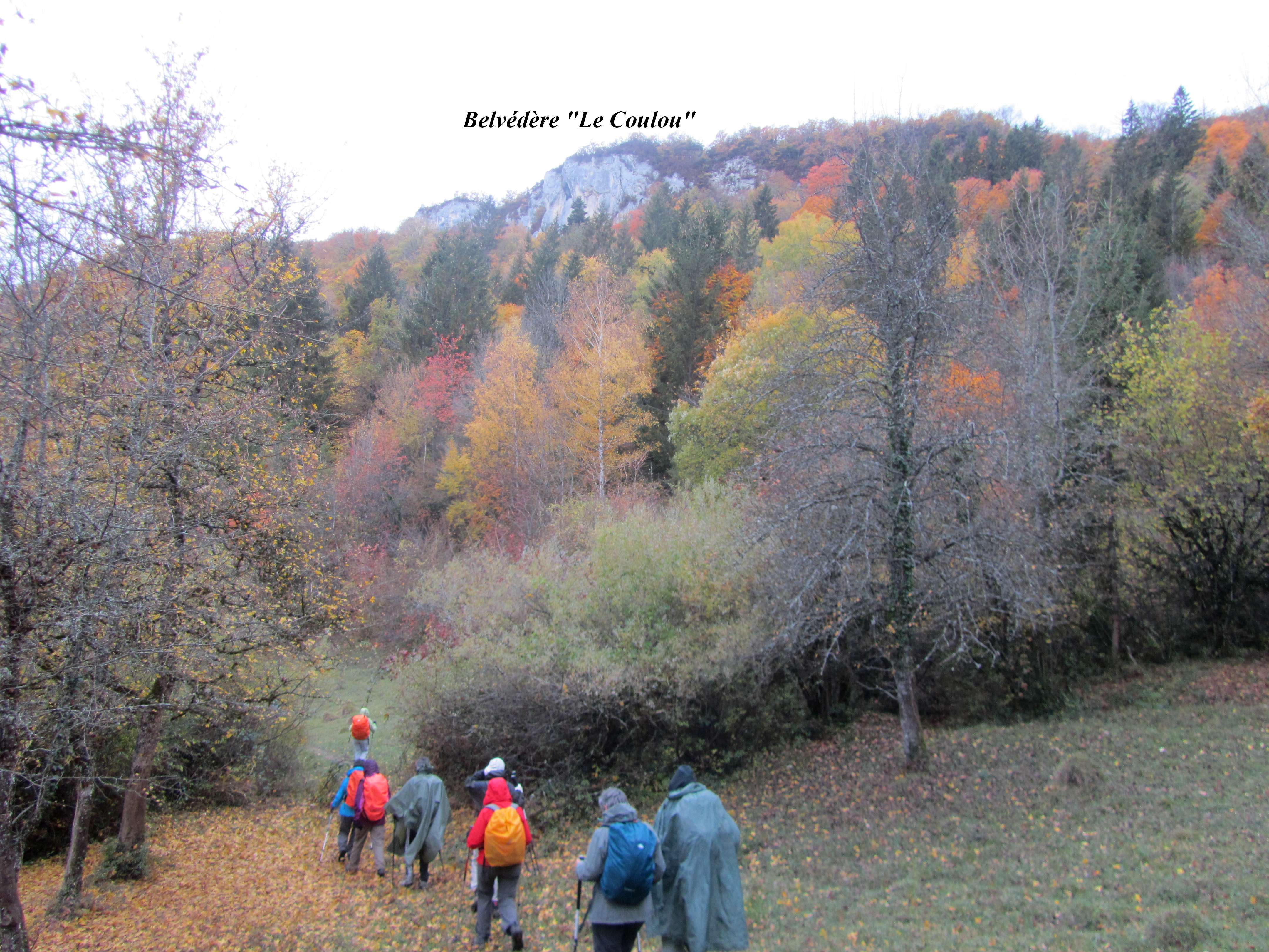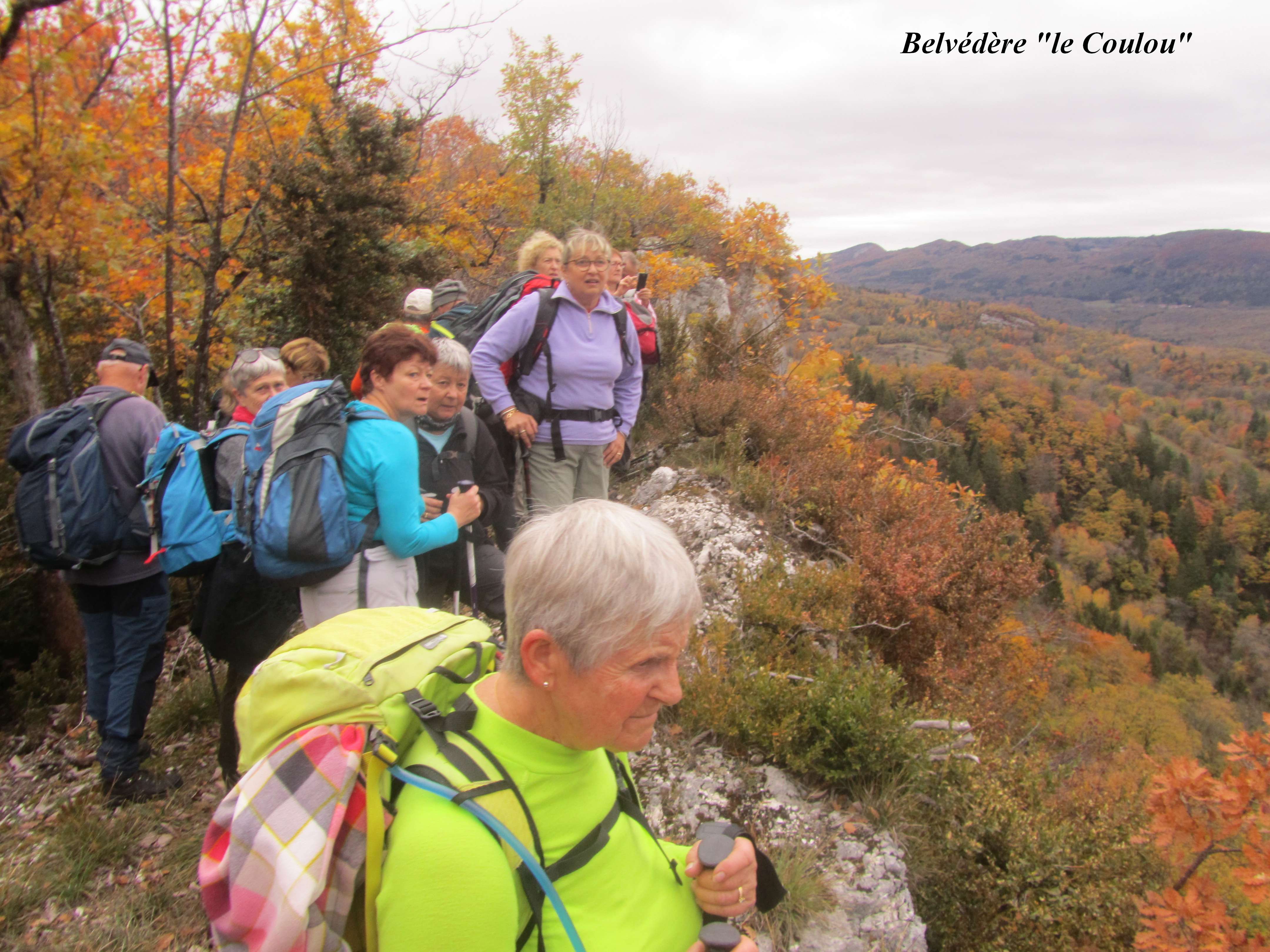 Un coup d’oeil au dessus de nos têtes pour voir du bas le belvédère « du Coulou ».