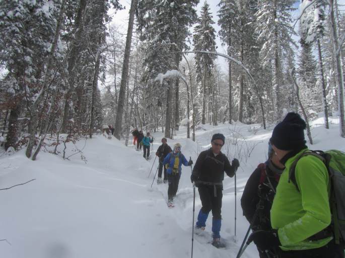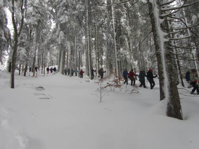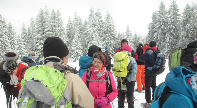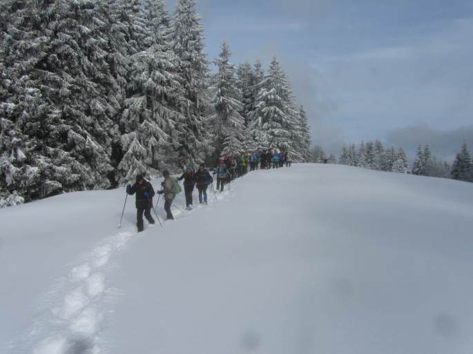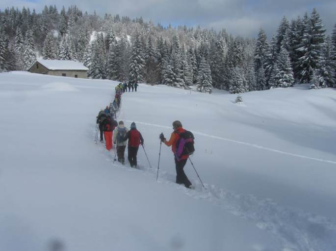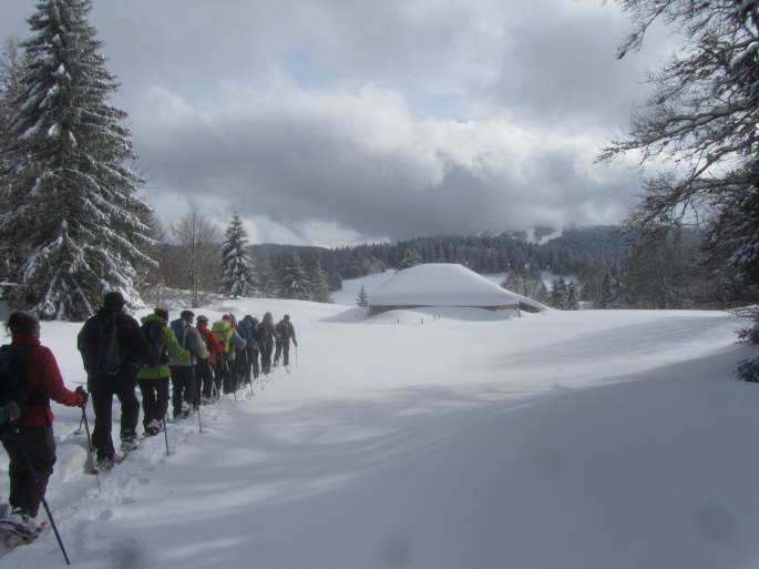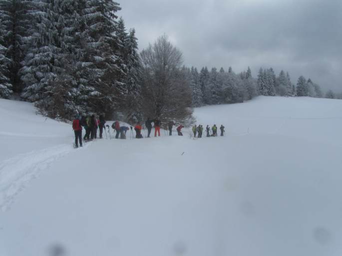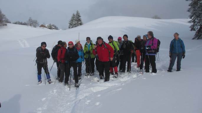 C’est depuis Lajoux que nous avons commencé notre rando raquettes avec au départ une température de moins 14 et 26 raquettistes bien emmitouflés. De la neige, de la neige, il n’en manquait pas !!!