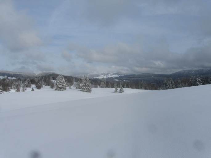 Le retour aux voitures s’est fait par les crêtes où quelques-uns se sont enfoncés dans la neige jusqu’aux hanches . D’autres se sont « aplatis », ayant du mal à se relever !