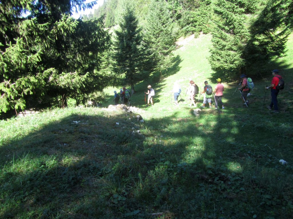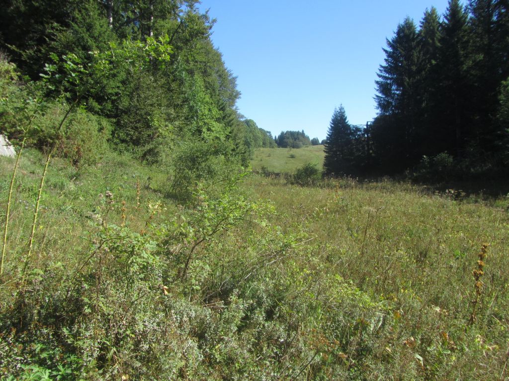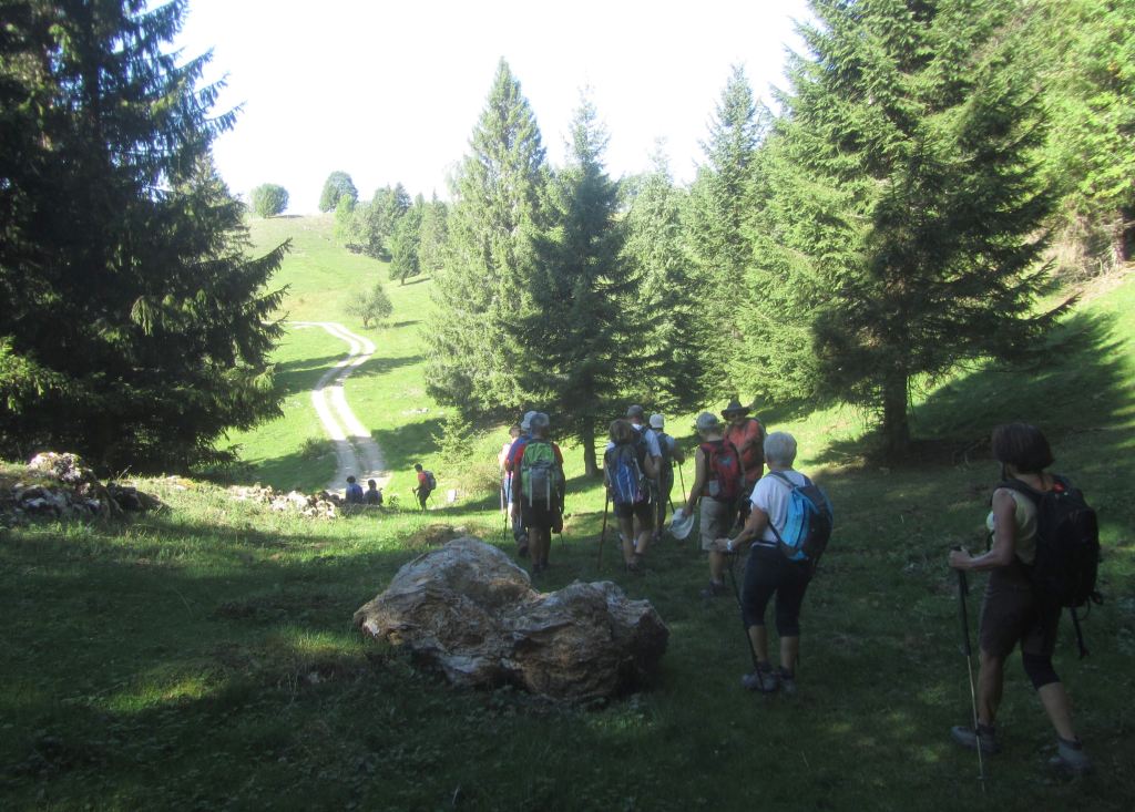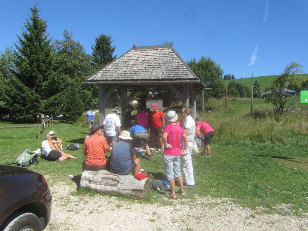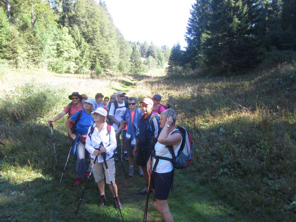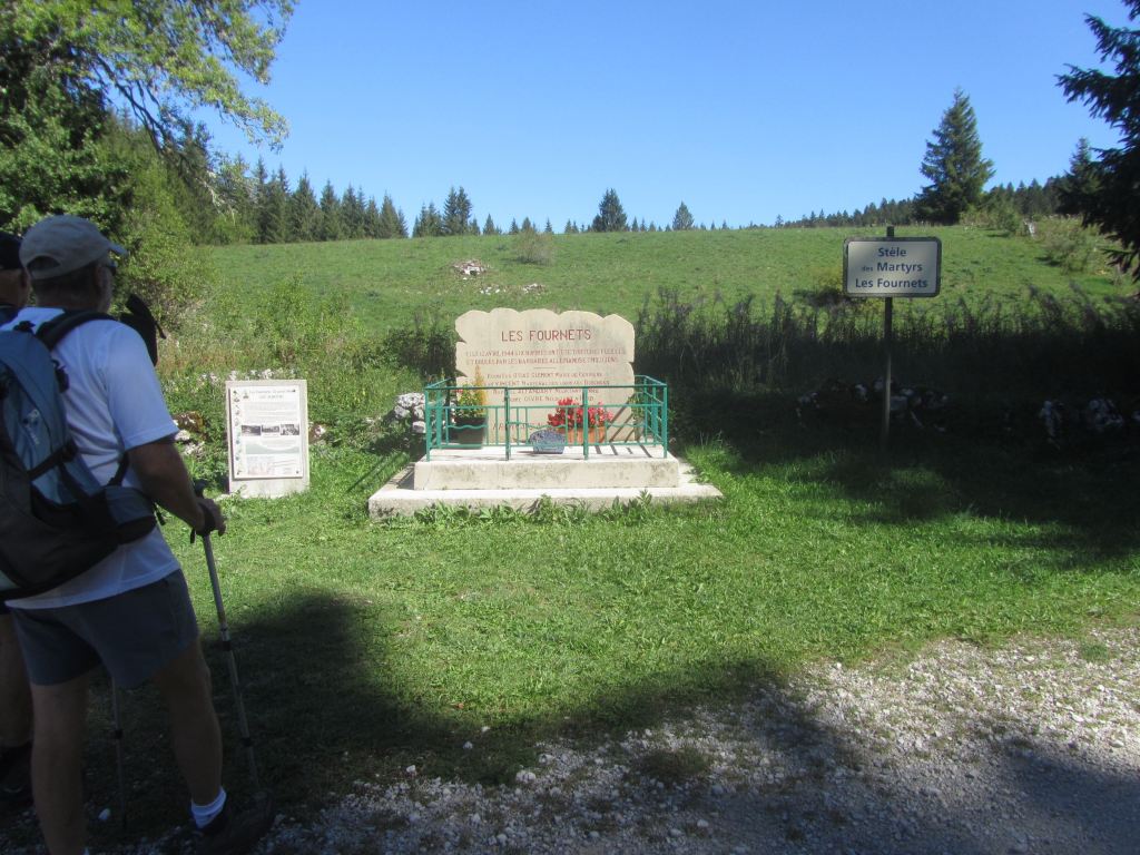 19 personnes…Les Moussières , sous un soleil déjà resplendissant, sera notre premier point de départ. Un peu de forêt, des combes ouvertes, des chemins tranquilles nous amènent vers un lieu de mémoire, inconnu pour la plupart d’entre nous… L’horreur est passée par là !