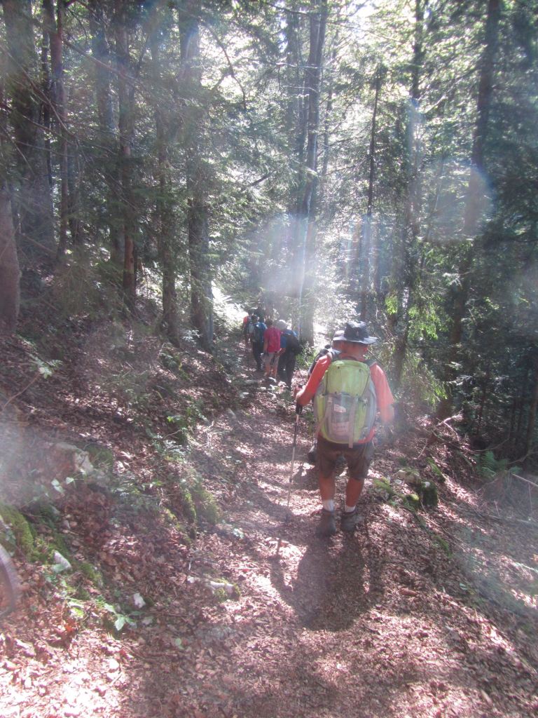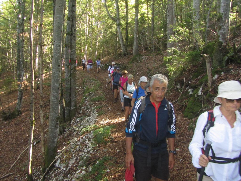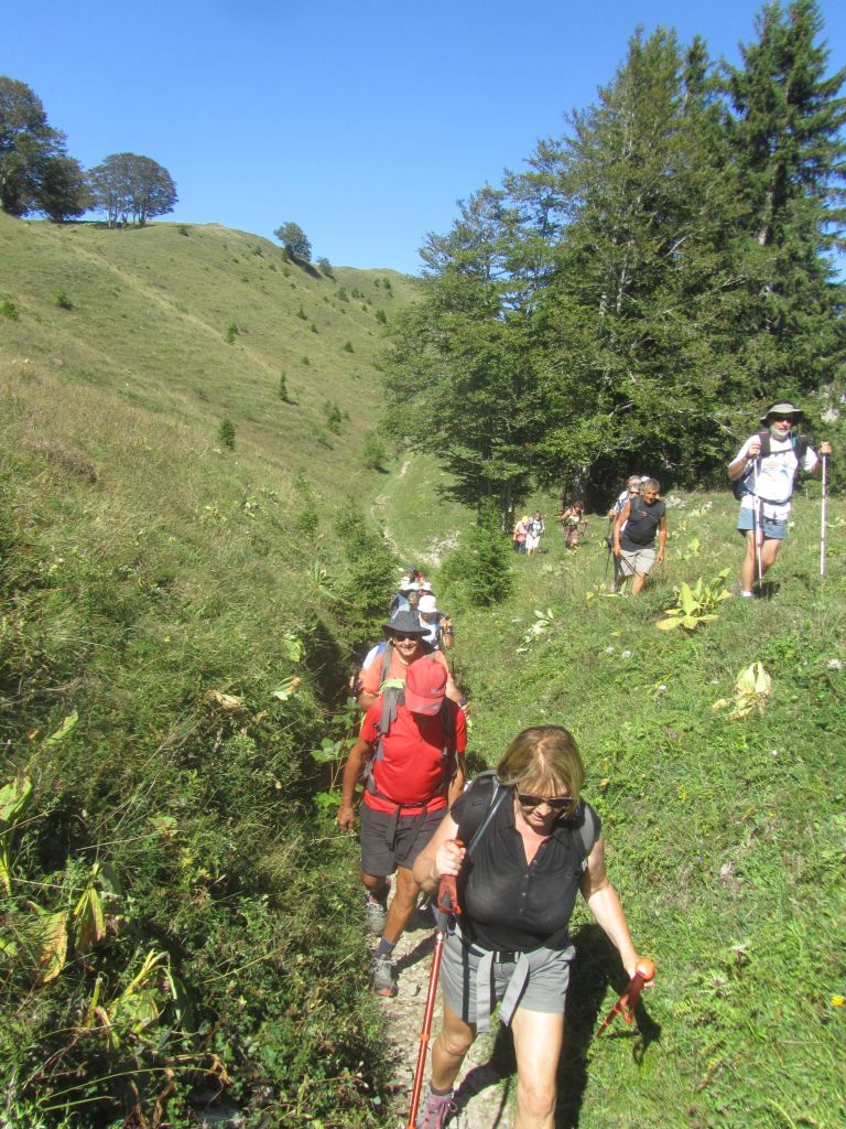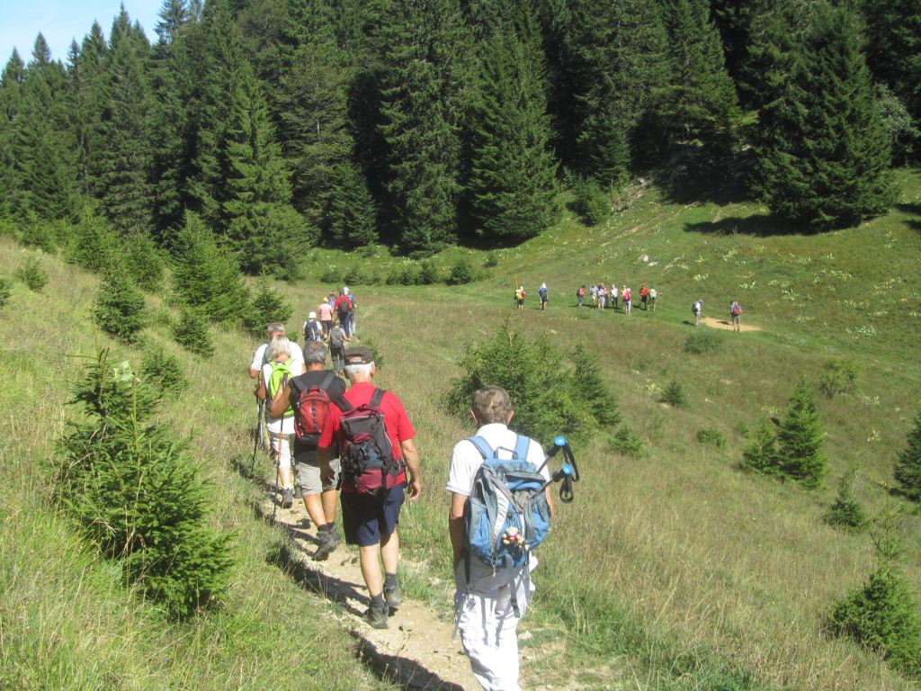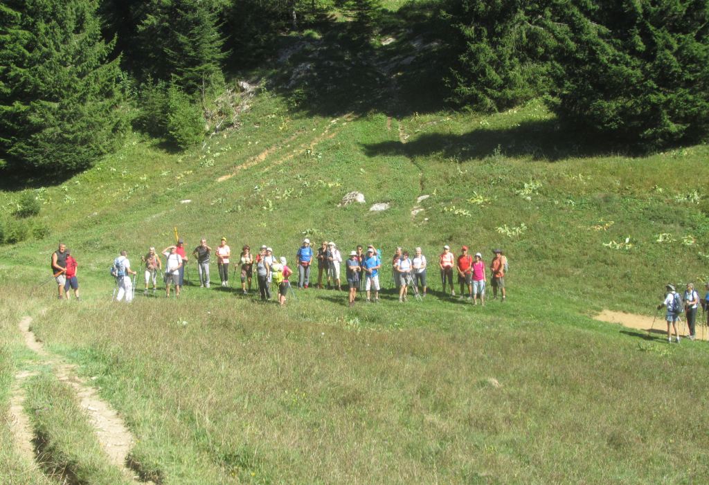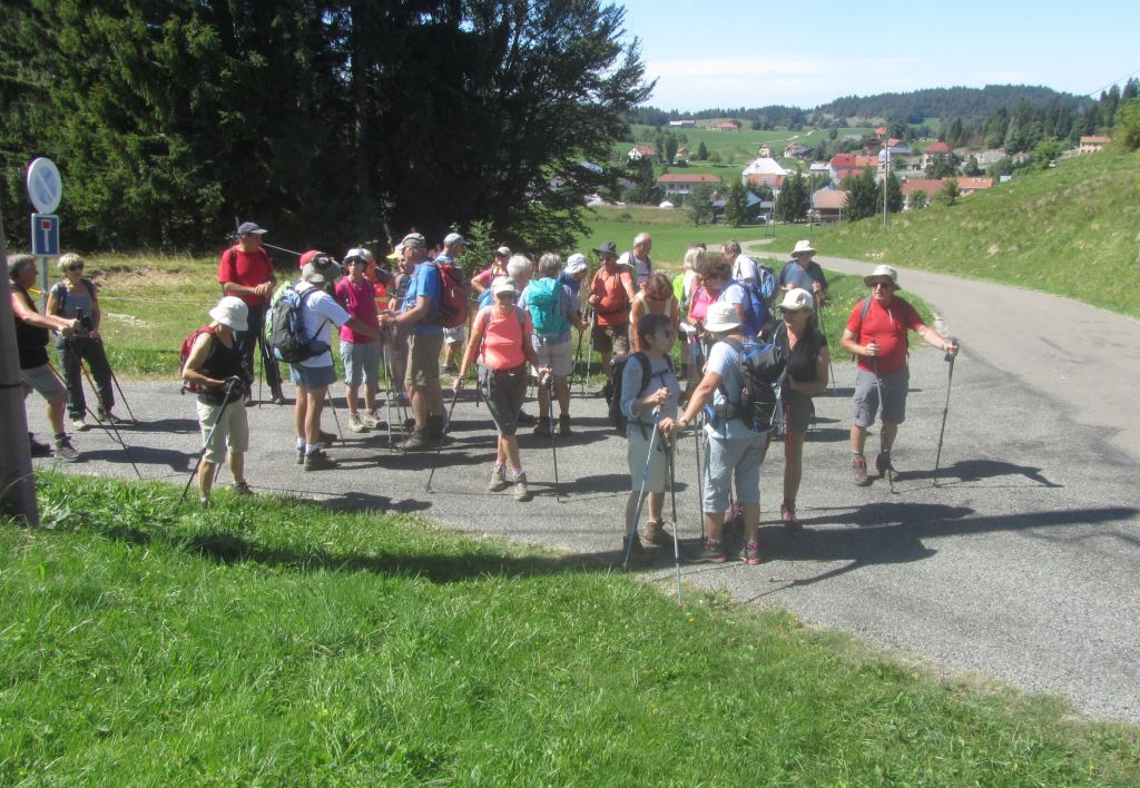 Et c’est parti pour les 32 randonneurs. Quelques nouveaux chemins seront découverts… la vue de quelques lieux perturbe… la perception hiver; été est bien différente… Après Le Nerbier, nous sommes admiratifs devant un groupe de jeunes sportifs qui galopent … Pas d’imitation envisagée !!