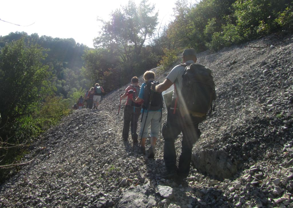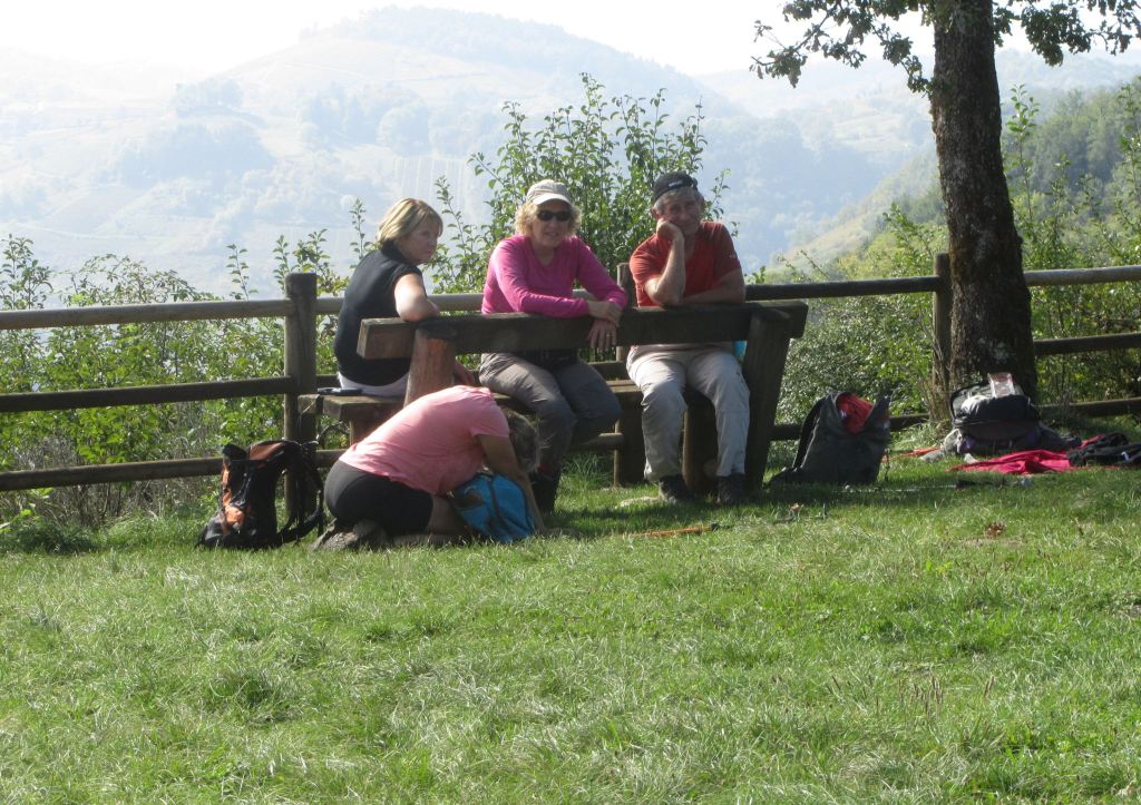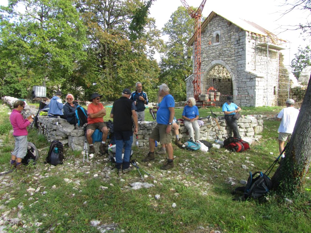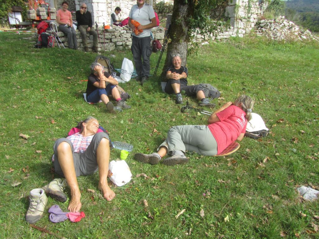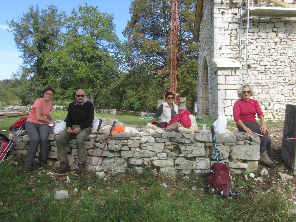 Première montée pour atteindre le panoramique ; puis Labalme où nous croisons un magnifique troupeau de race Aubrac ; quelques hésitations pour trouver le sentier qui mène au « château Vieux » et son belvédère ( qui mériterait d’être dégagé!)… Après la traversée de la route du Vieux Cerdon, une belle grimpette nous mène sur le sentier des crêtes, le Rocher de St Alban et sa chapelle en rénovation… nouveau point de vue sur la vallée ! Nous profitons grandement de la pause, avant de reprendre le sentier des crêtes sud. Nous plongeons sur un étroit sentier parfois glissant et rejoignons la vallée. Nous terminons en remontant le ruisseau « Le Veyron ».