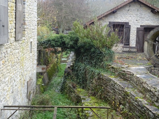 Une descente sur une route étroite et nous découvrons la vallée des Moulins (de La Ville, Neuf, La Fouge,) et en dernier celui de La Meuge qui a été minutieusement rénové en maison d’habitation avec, même, sur le côté, une piscine couverte.