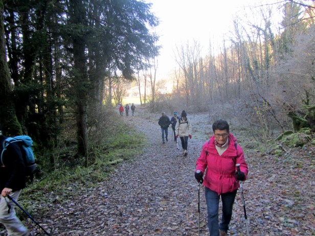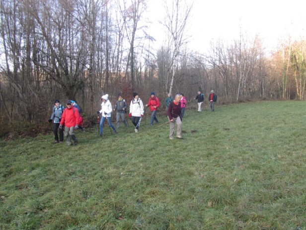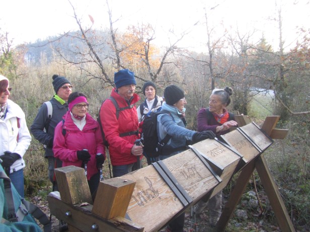 Nous ne sommes pas très nombreux, et bien nous en a pris… le soleil est bien présent sur le plateau! L’ambiance, météo j’entends, est fraîche, les 13 randonneurs sont bien heureux d’être présents..