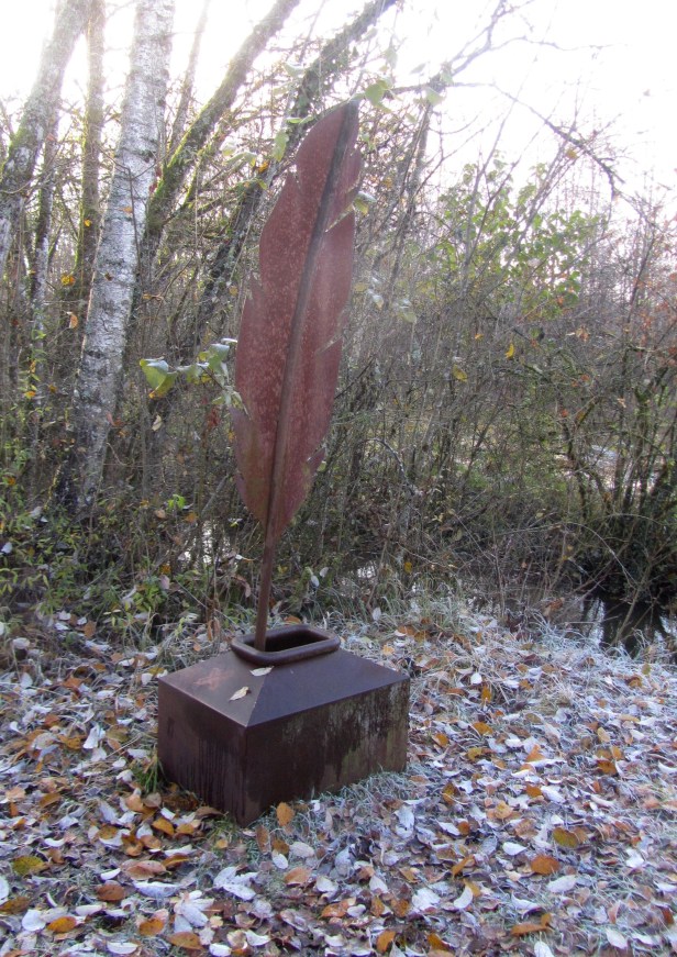 Nous remontons sur Coulouvre; encore une découverte; grimpons encore un peu avant de plonger sur Crenans… Le sentier « sous la Cochère » nous amène à la plume de Lamartine! Les couleurs vers le lac Envolé sont superbes! Encore quelques longueurs en déchiffrant les pensées de l’homme à la plume, une dernière pause vers les chaises artistiques… et c’est la fin ; 2h40 pour cette balade en cette saison…. parfait.