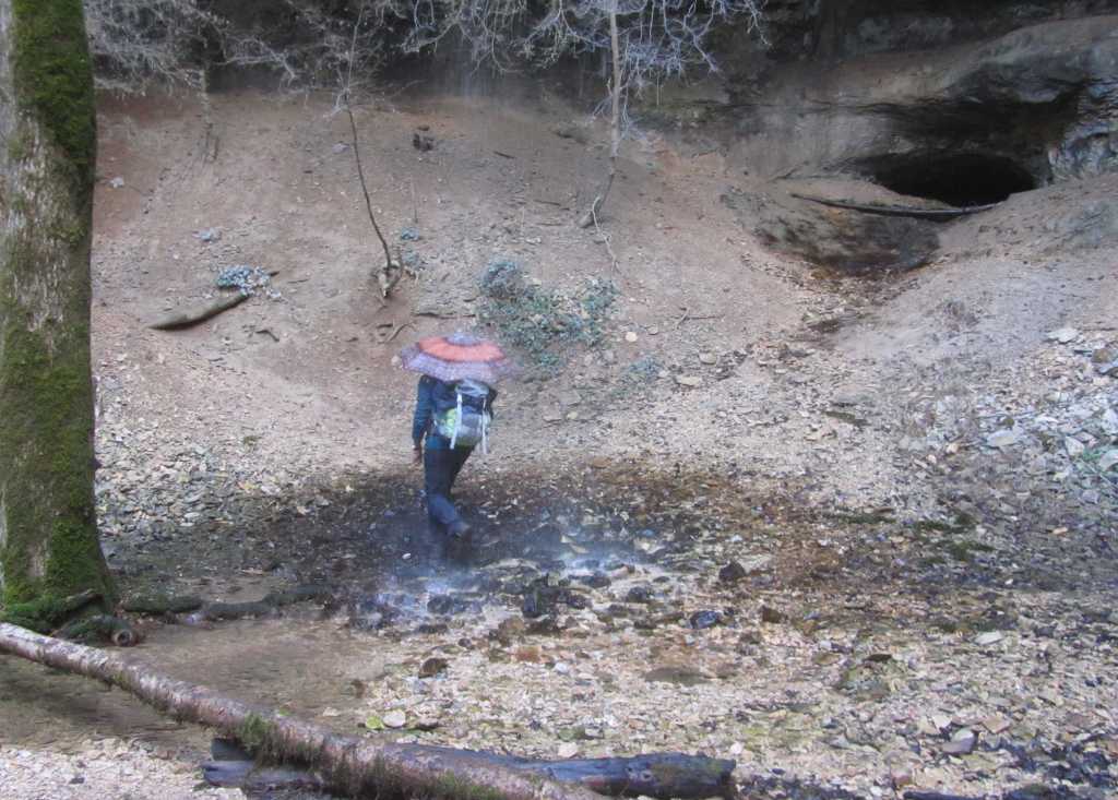 Un premier chemin boueux nous mène jusqu’au dessus de la Caborne ; nous rejoignons l’ancien moulin de l’Ile et descendons la rivière en rive droite. Quelques crachins viennent nous ennuyer !