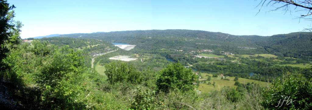 Ce hameau connut plus tard sa notoriété – après la construction du barrage de Vouglans – grâce à ce belvédère qui nous offre aujourd’hui un panorama superbe sur le site et la possibilité de pique-niquer ou de se reposer sur ses accueillants Rupt-bancs de pierre.