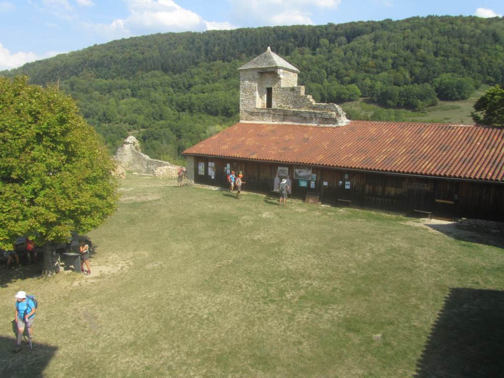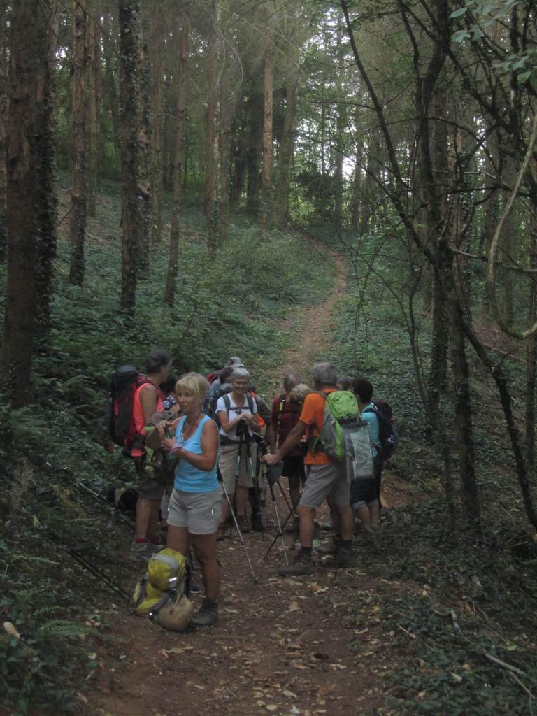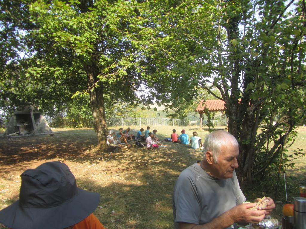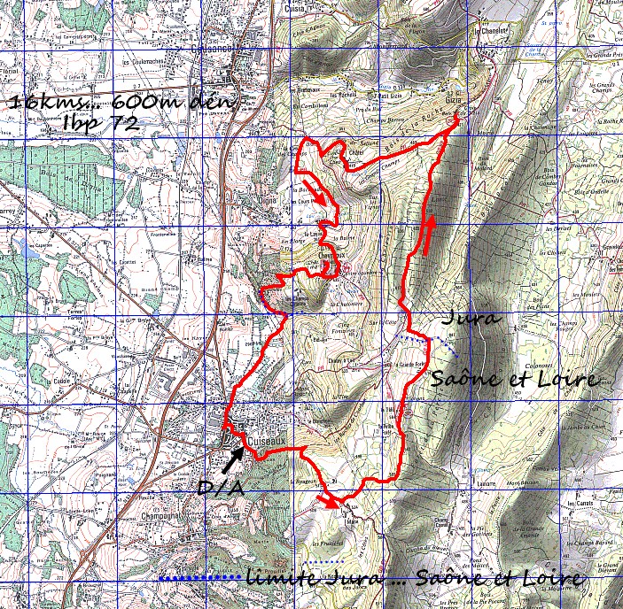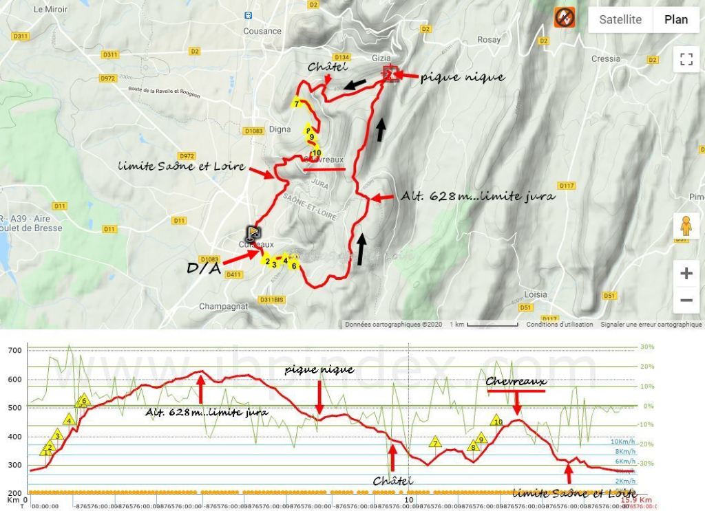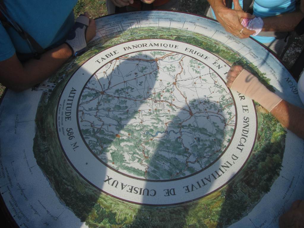 A proximité de la chapelle St Jacques, échauffement immédiat (230m dén) sur la côte Rouillarde, puis le hameau Marie, la Petite Forêt et la table d’orientation à 598m d’altitude.. La Grande Forêt, le point culminant du jour à 624m…. et on se retrouve dans le Jura. Un long chemin ombragé nous amène au belvédère de la Croix de Gizia. De la place, de l’ombre, un léger vent : idéal pour le pique nique.