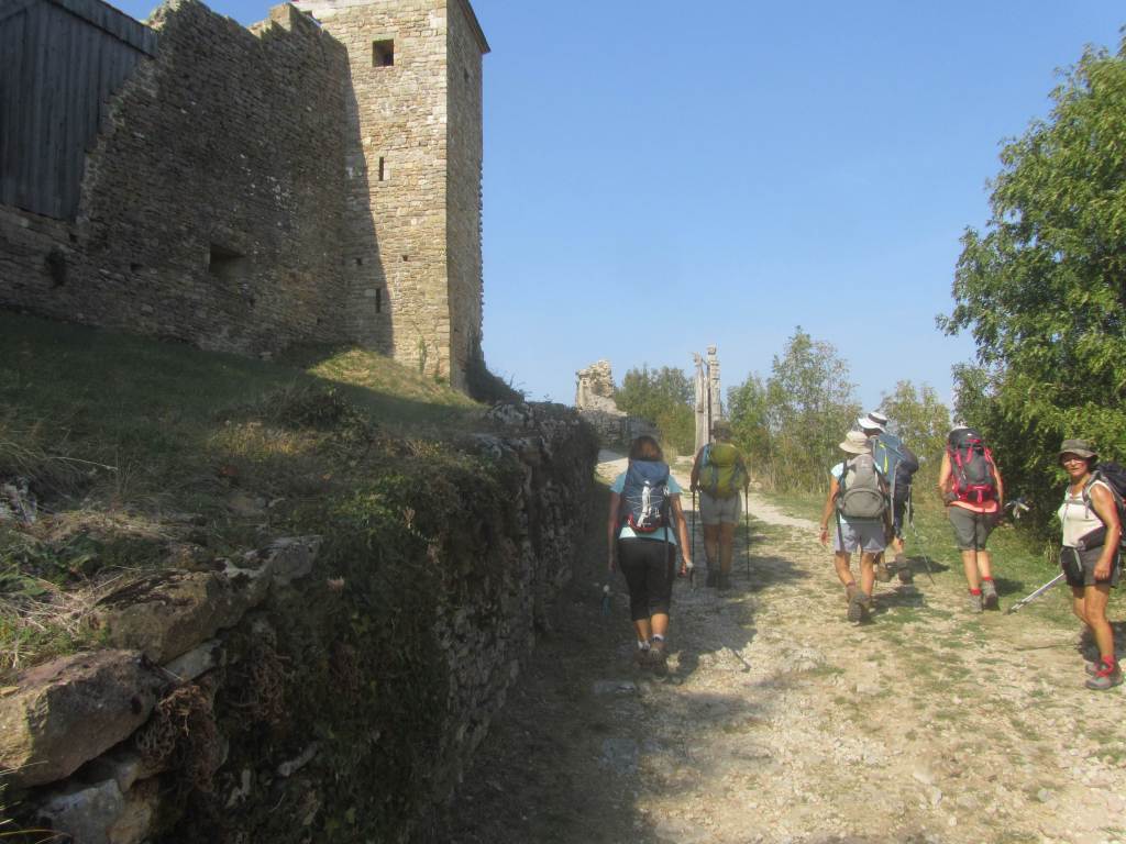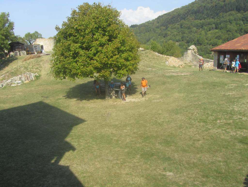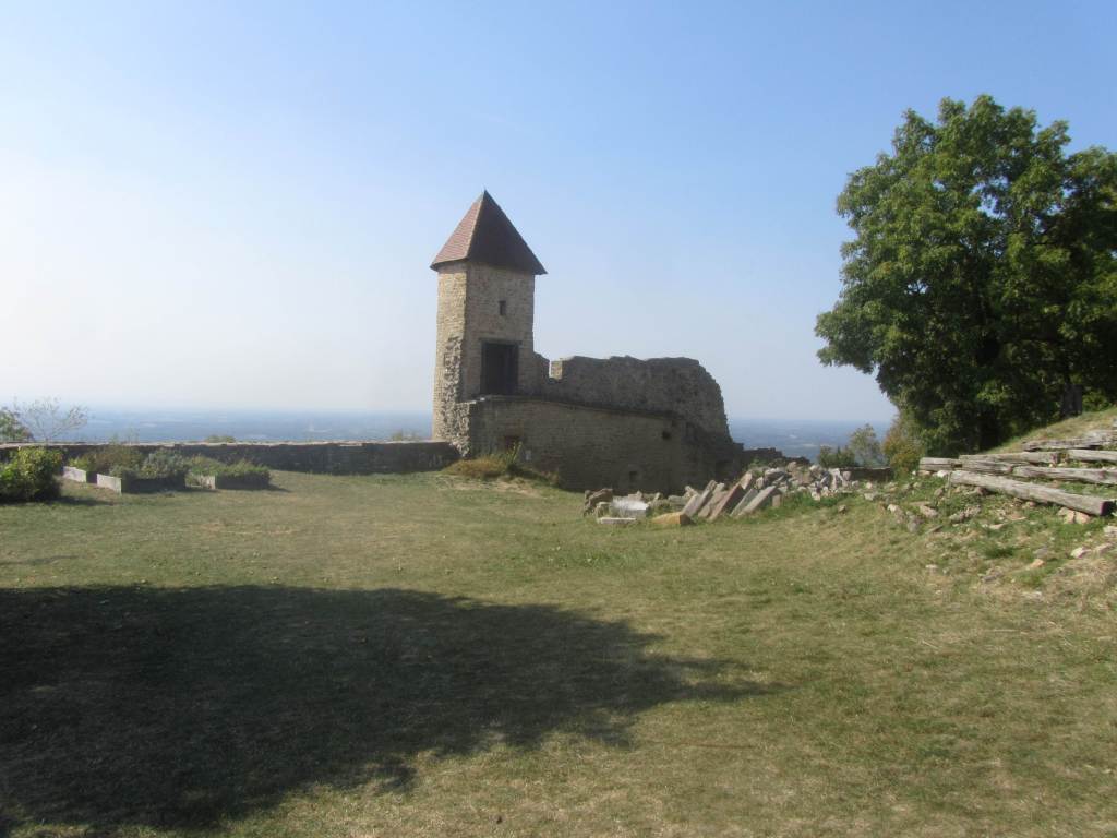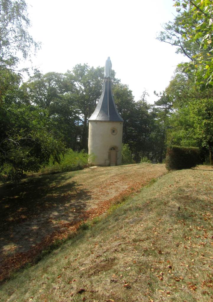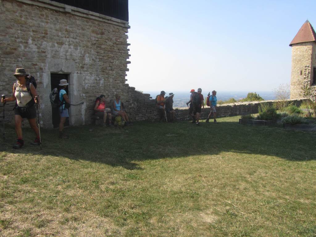 Des changements de direction, des oratoires, quelques arpents de vigne , des vergers agrémentent le paysage… Le Layau, et au dessus Chevreaux… Il fait très chaud… Presque 150m de dénivelée ; dur… dur…. pour atteindre le château.