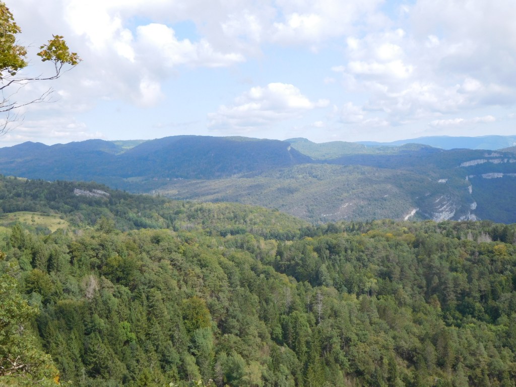Puis une petite pose au belvédère dit de Chanon avec table de lecture et vue sur les monts du jura .