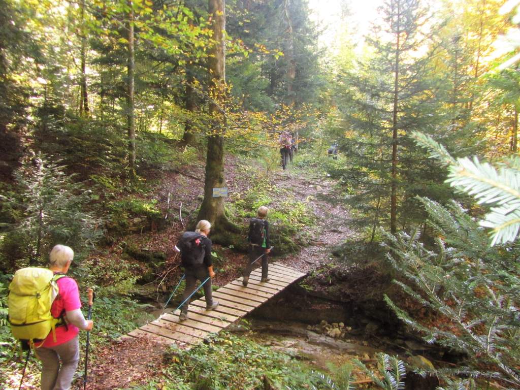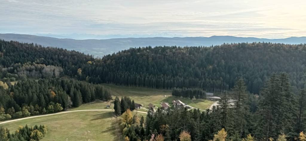 Après un circuit en pente douce nous sommes arrivés au sommet des pistes de ski de descente d’Hauteville. Belle vue sur les Alpes.