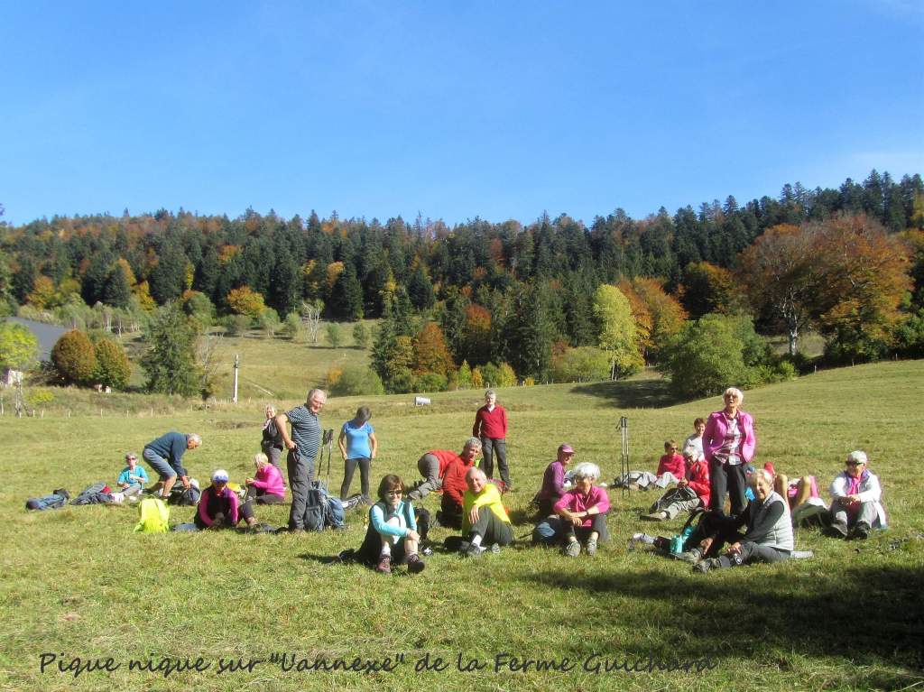 Arrêt casse-croûte dans un pré accueillant et bien ensoleillé.(pas au resto hélas).
