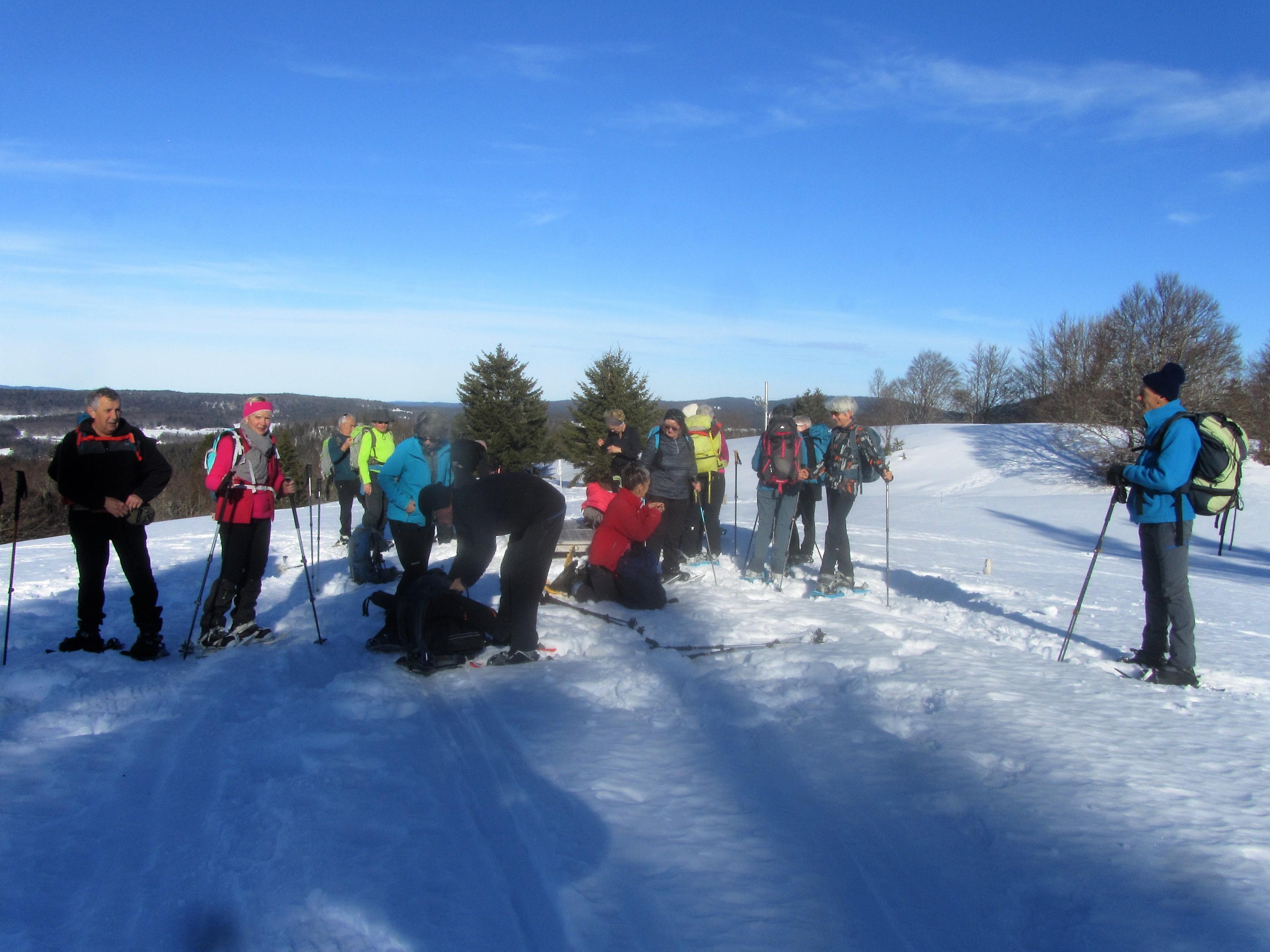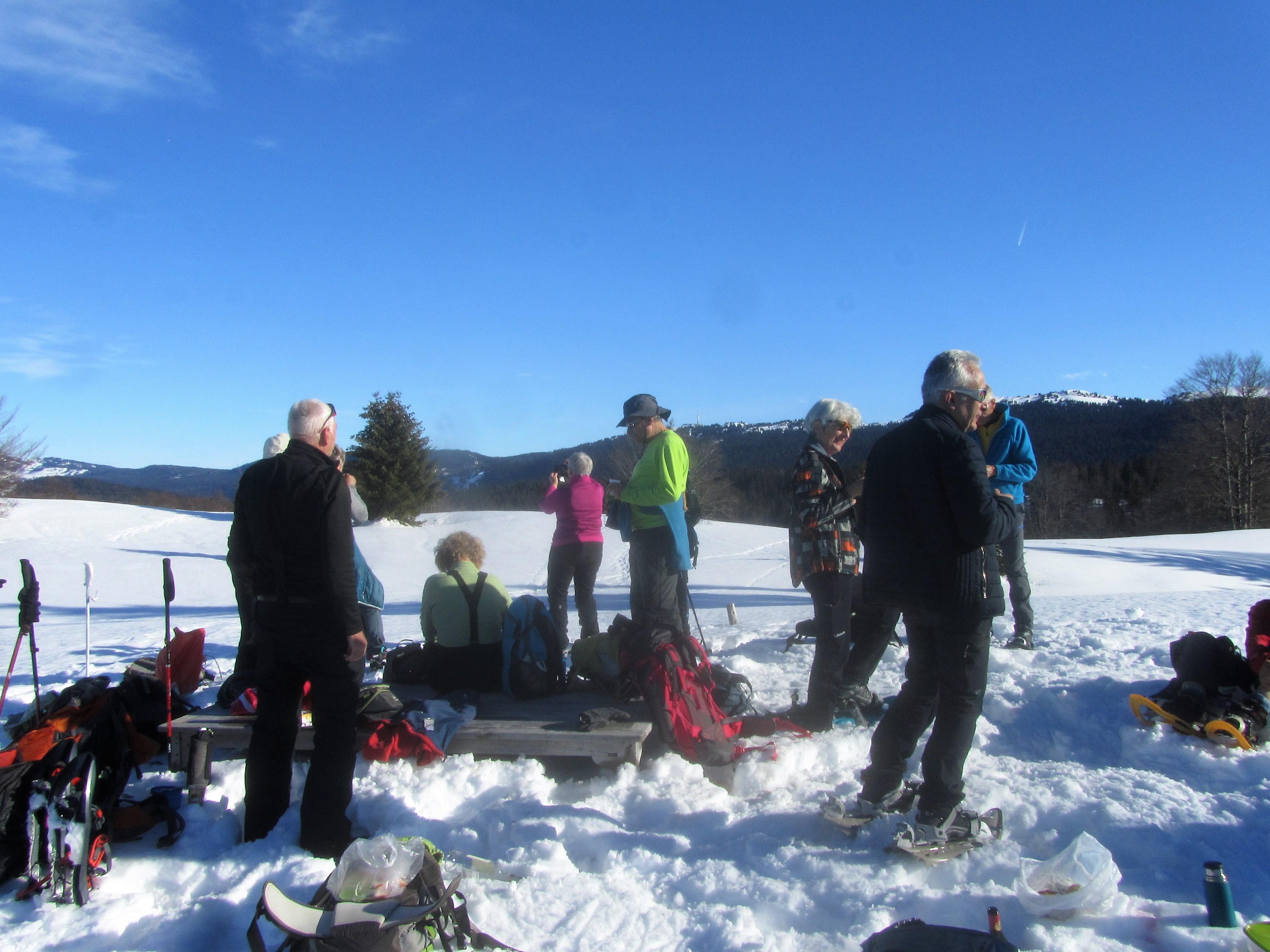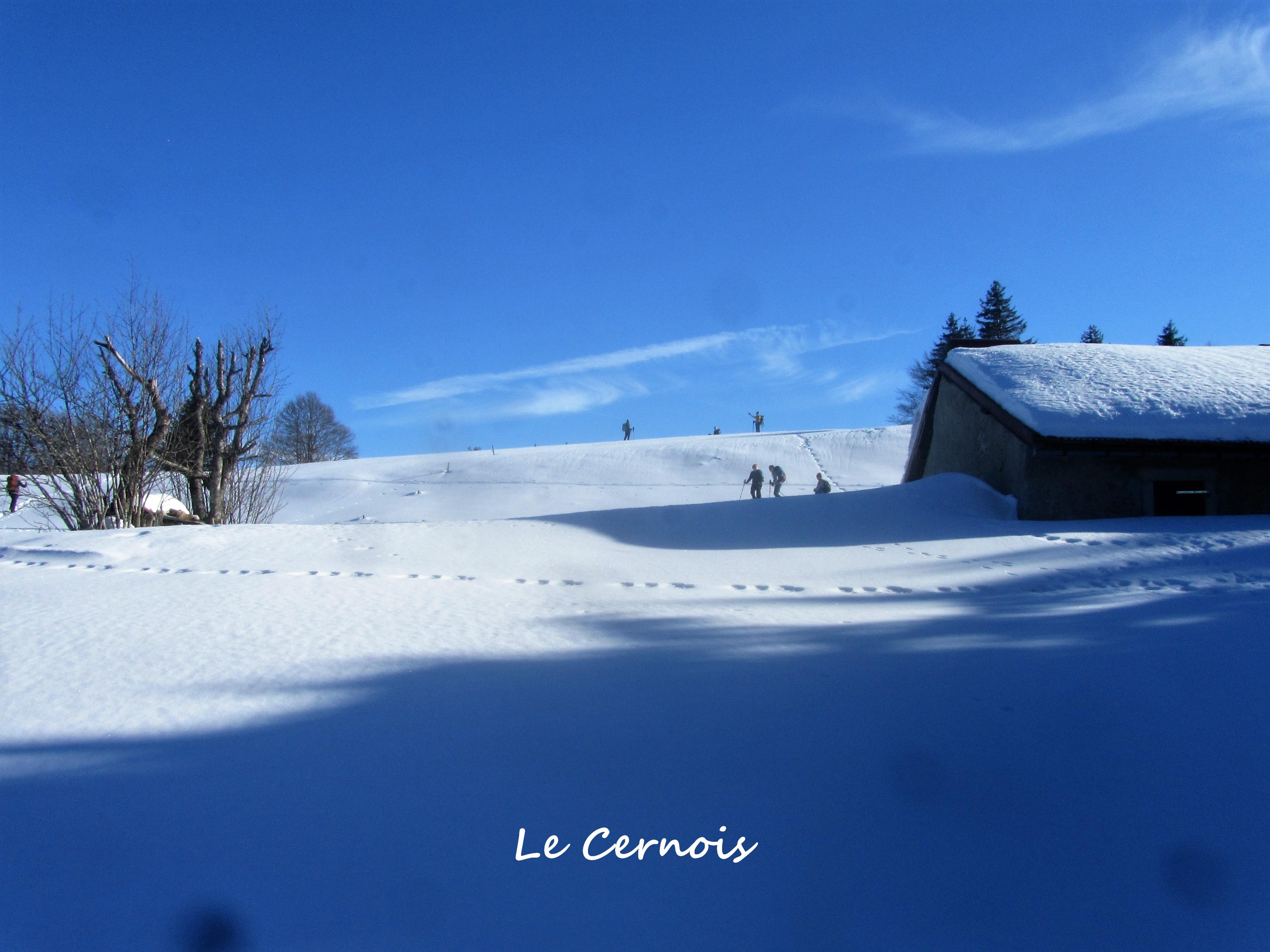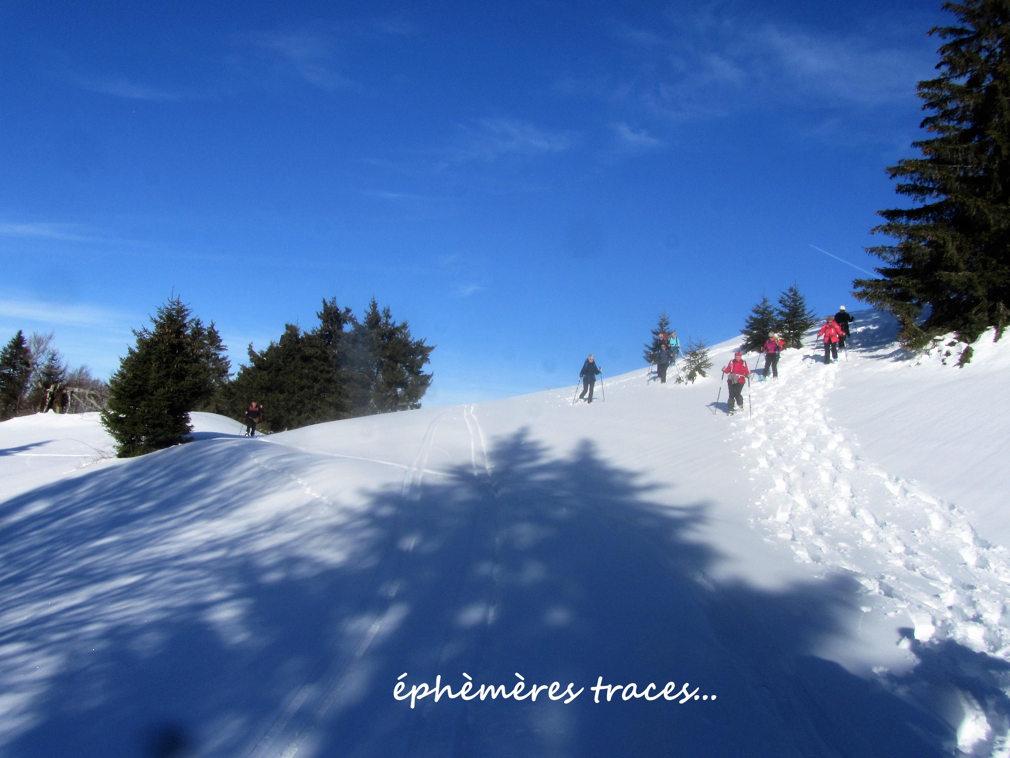 Un soleil éclatant nous accueille …. le parking est une patinoire; -9° remarqué après les Moussières, mais le thermomètre fait du yoyo..