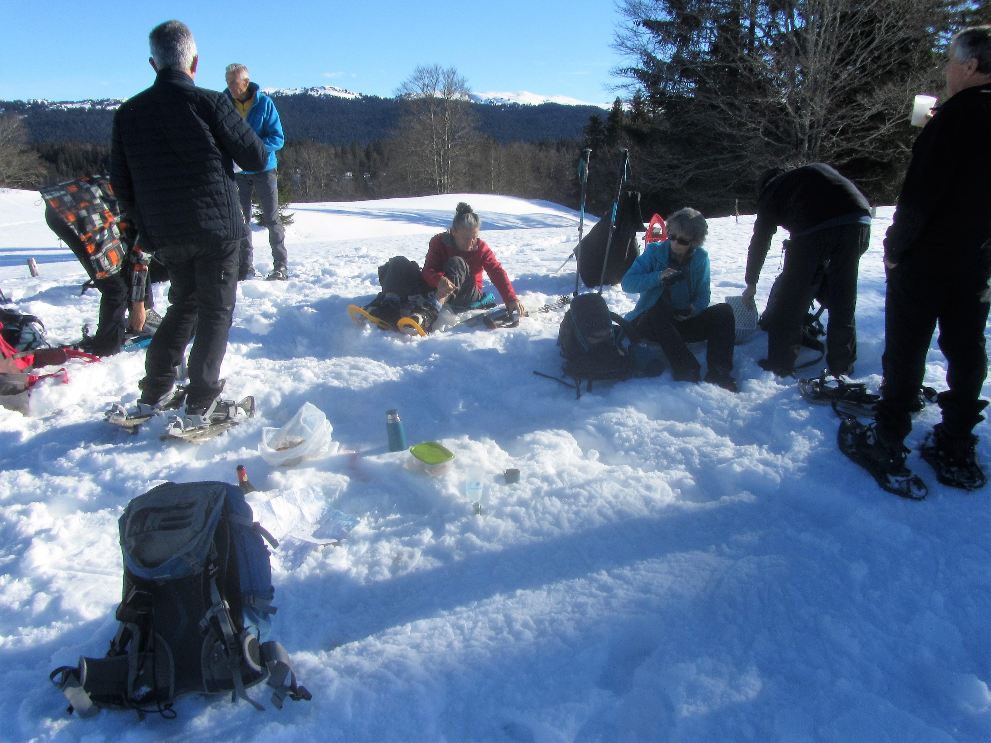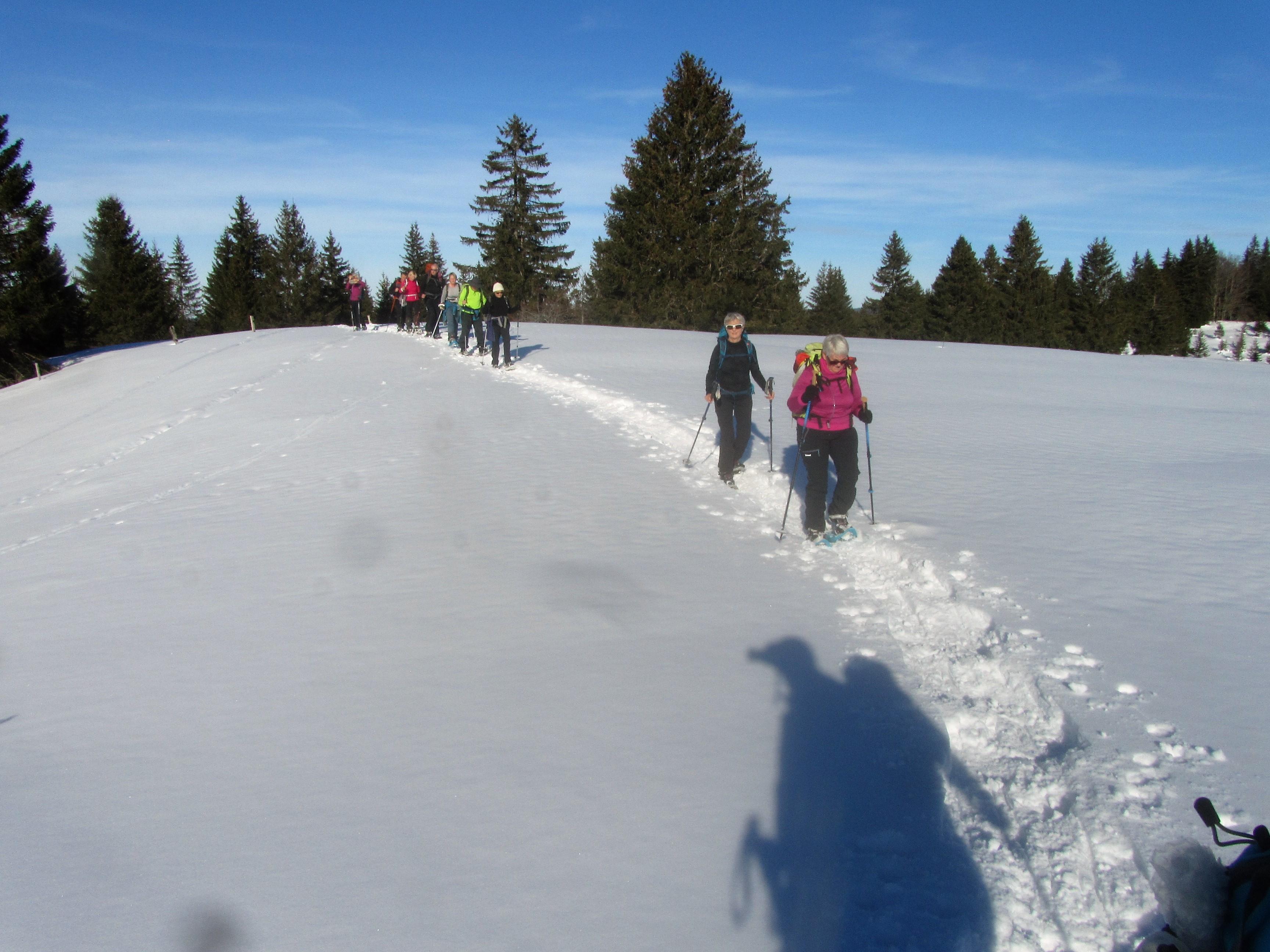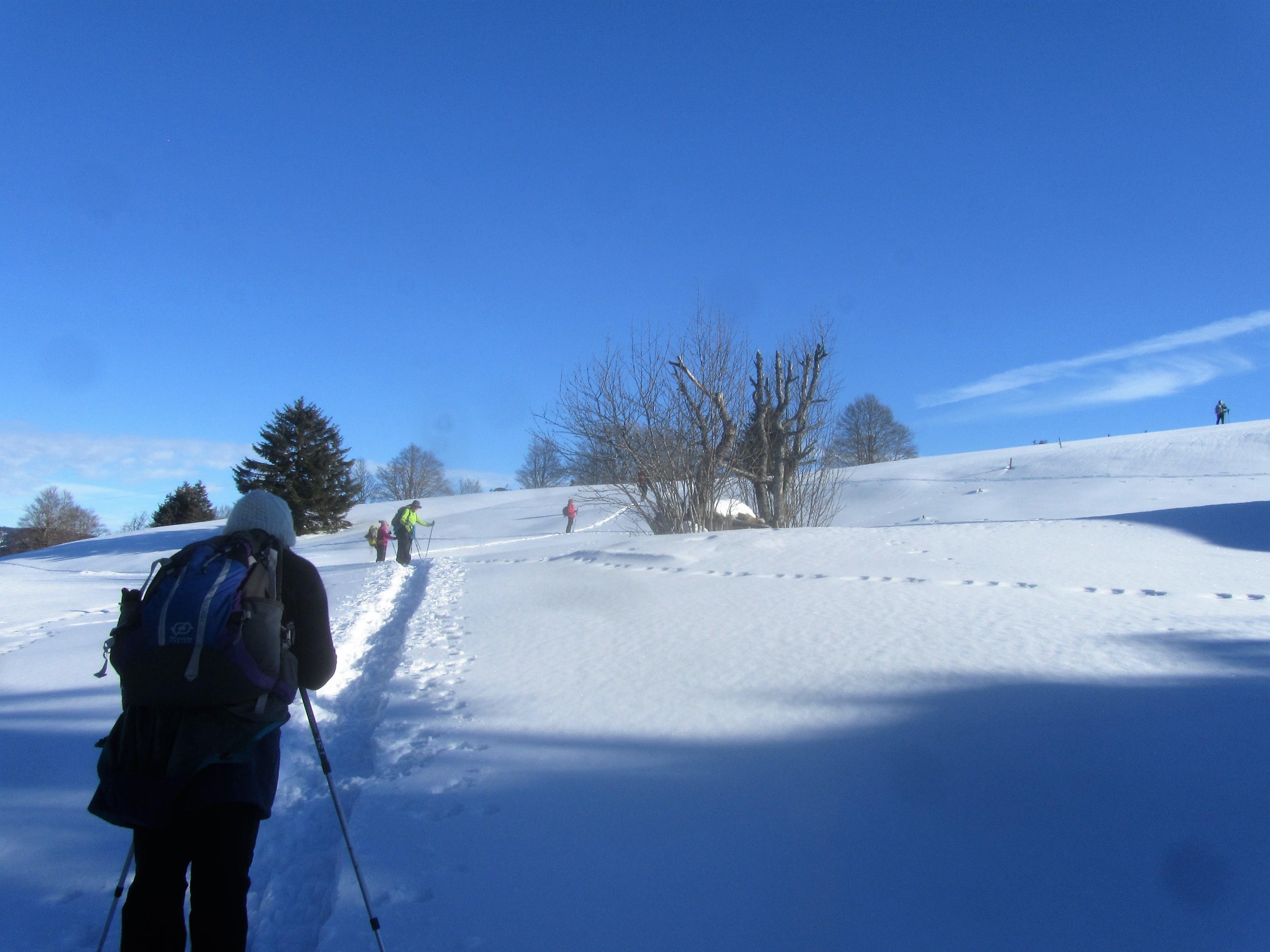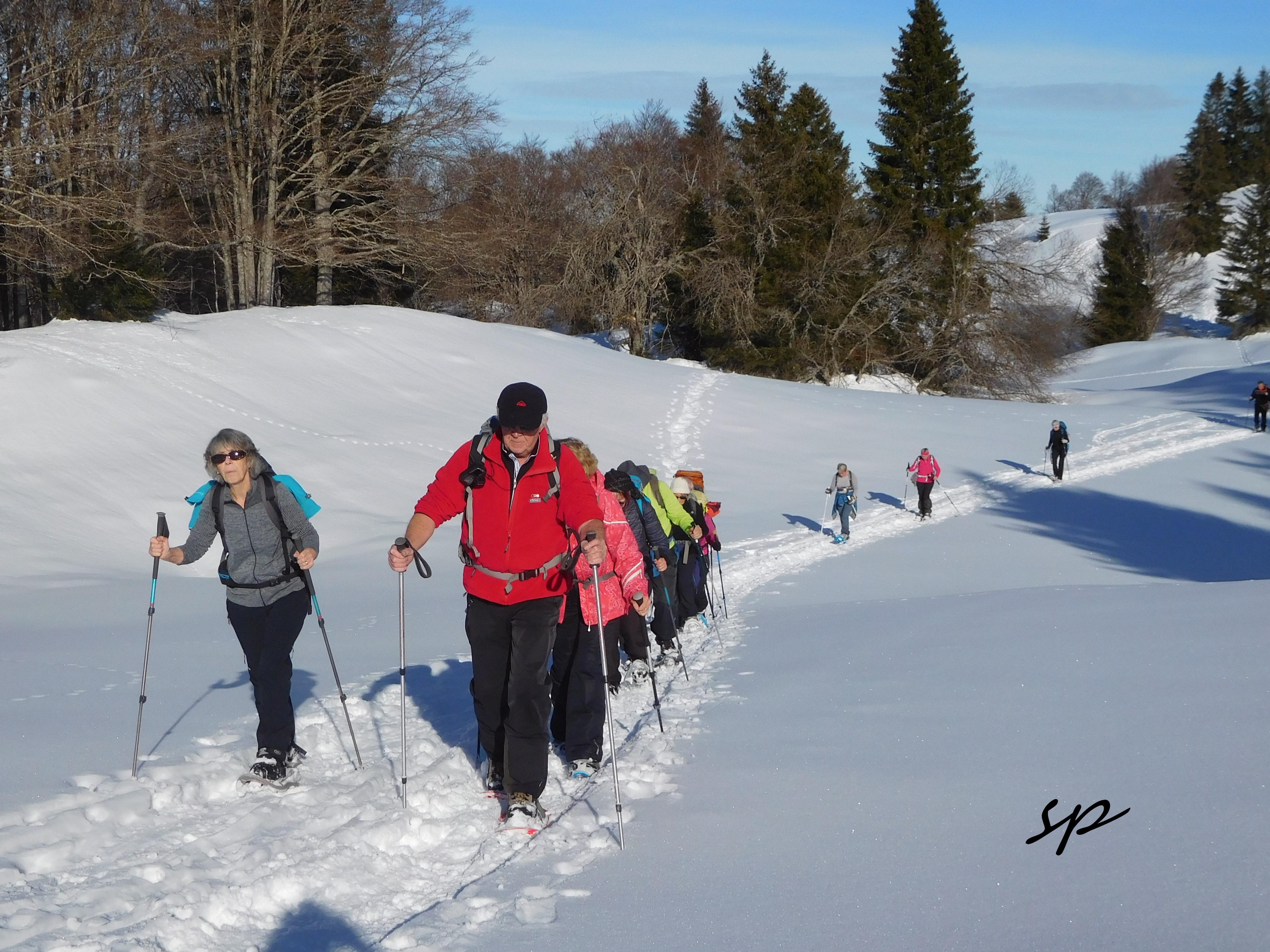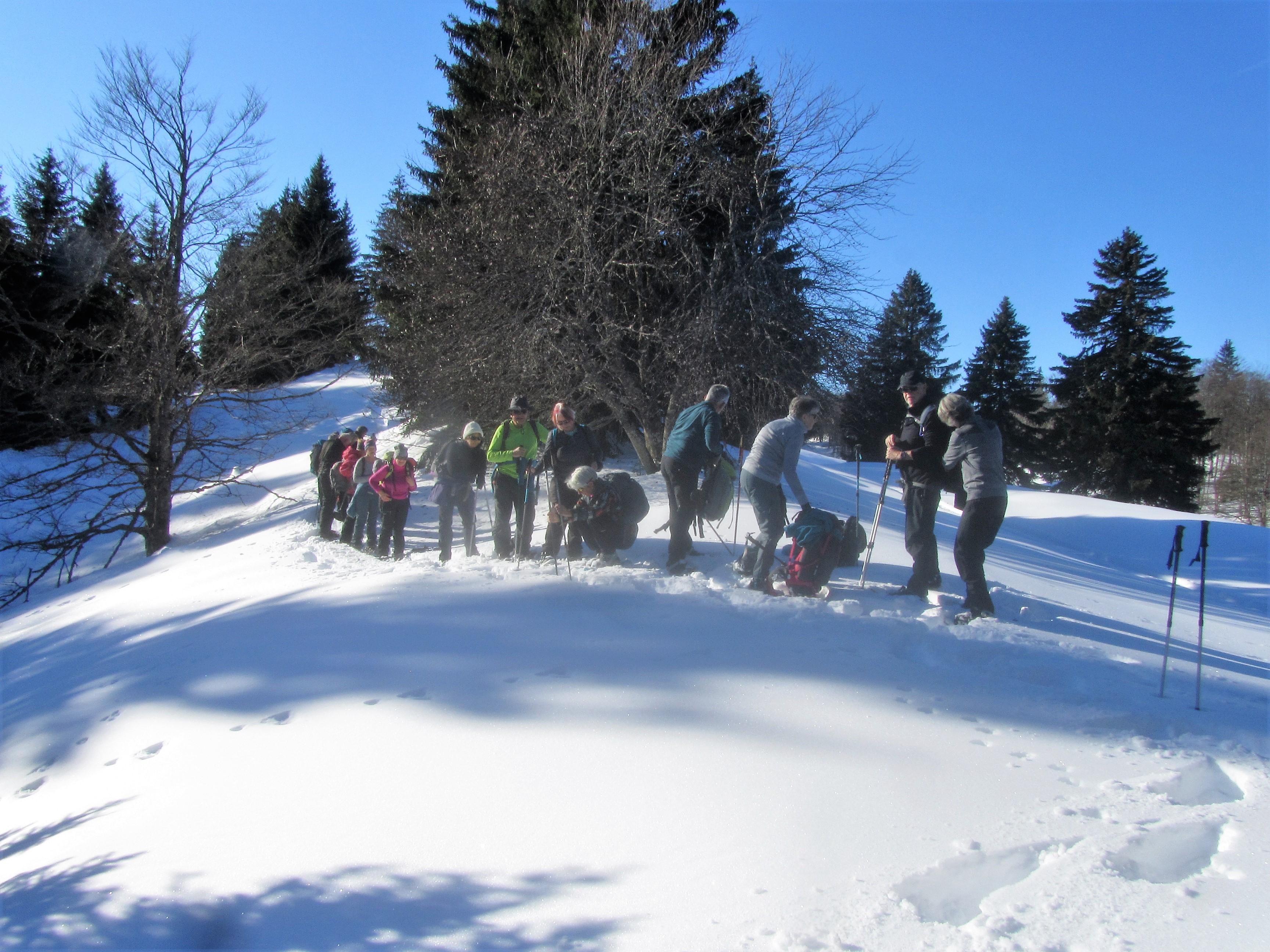 Un soleil éclatant nous accueille …. le parking est une patinoire; -9° remarqué après les Moussières, mais le thermomètre fait du yoyo..