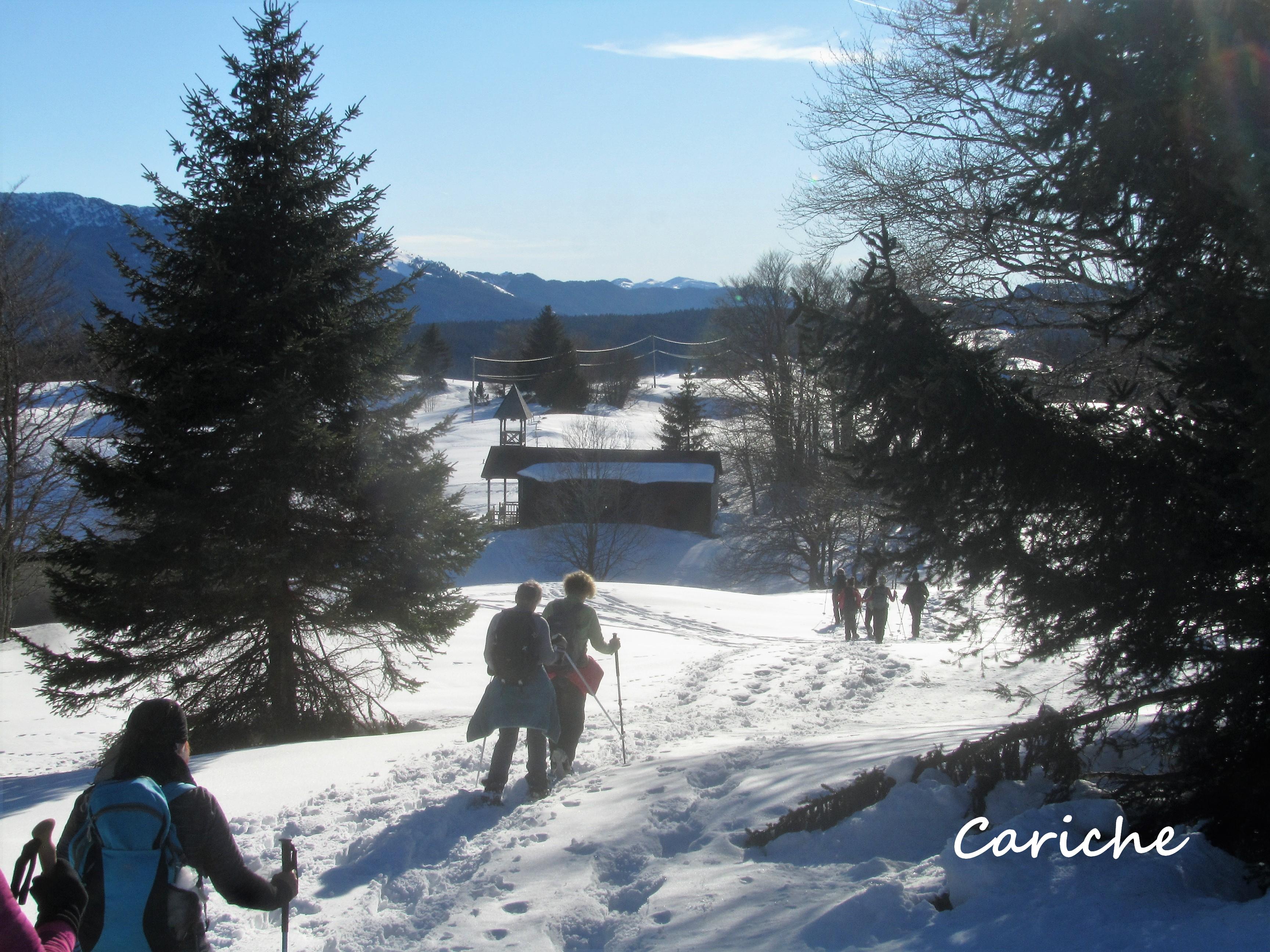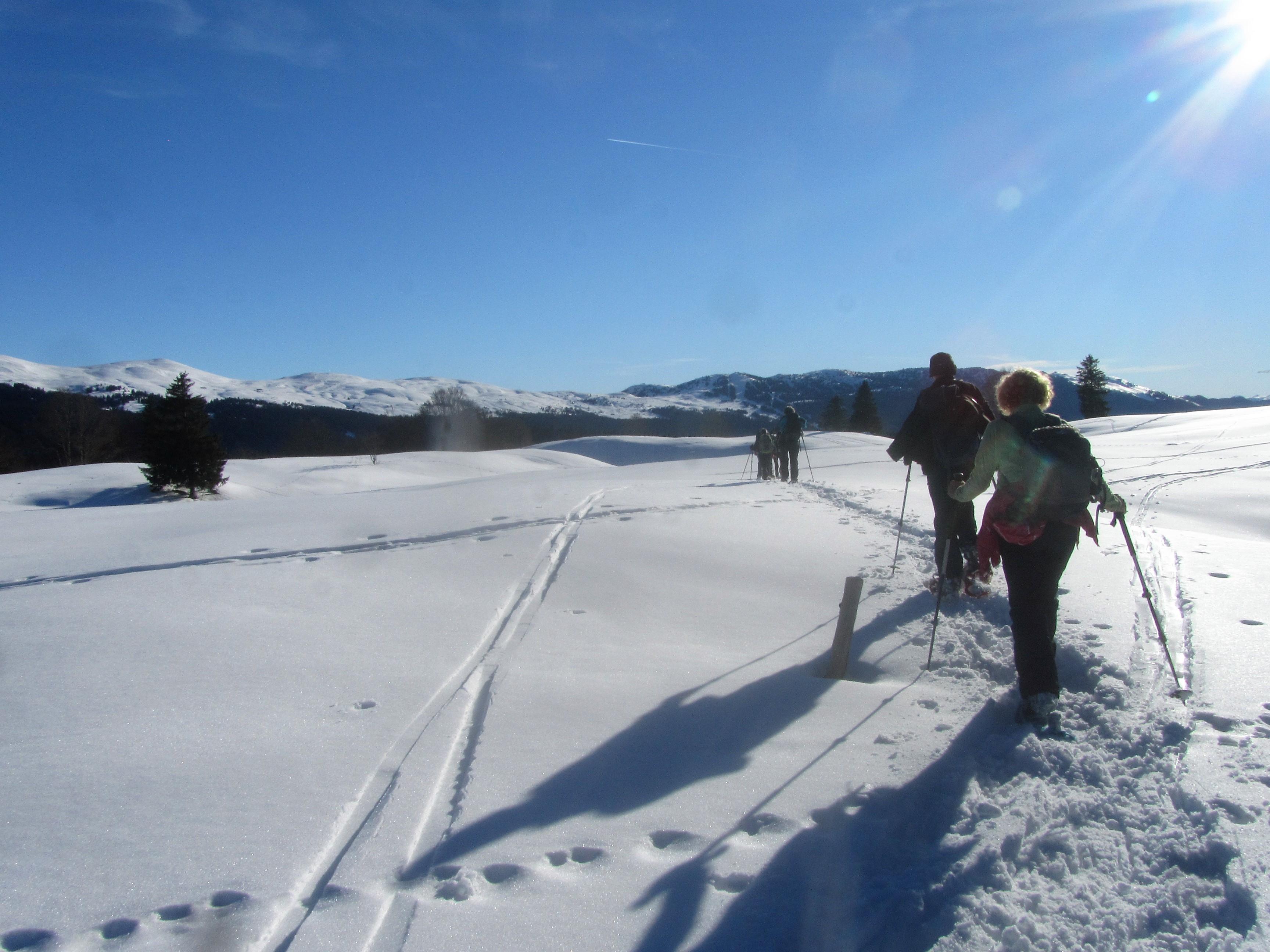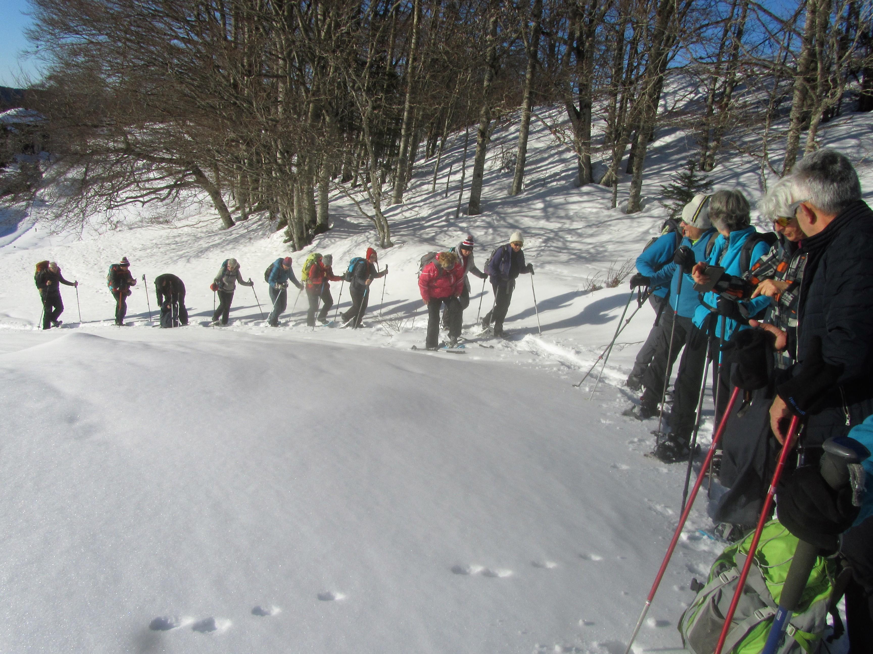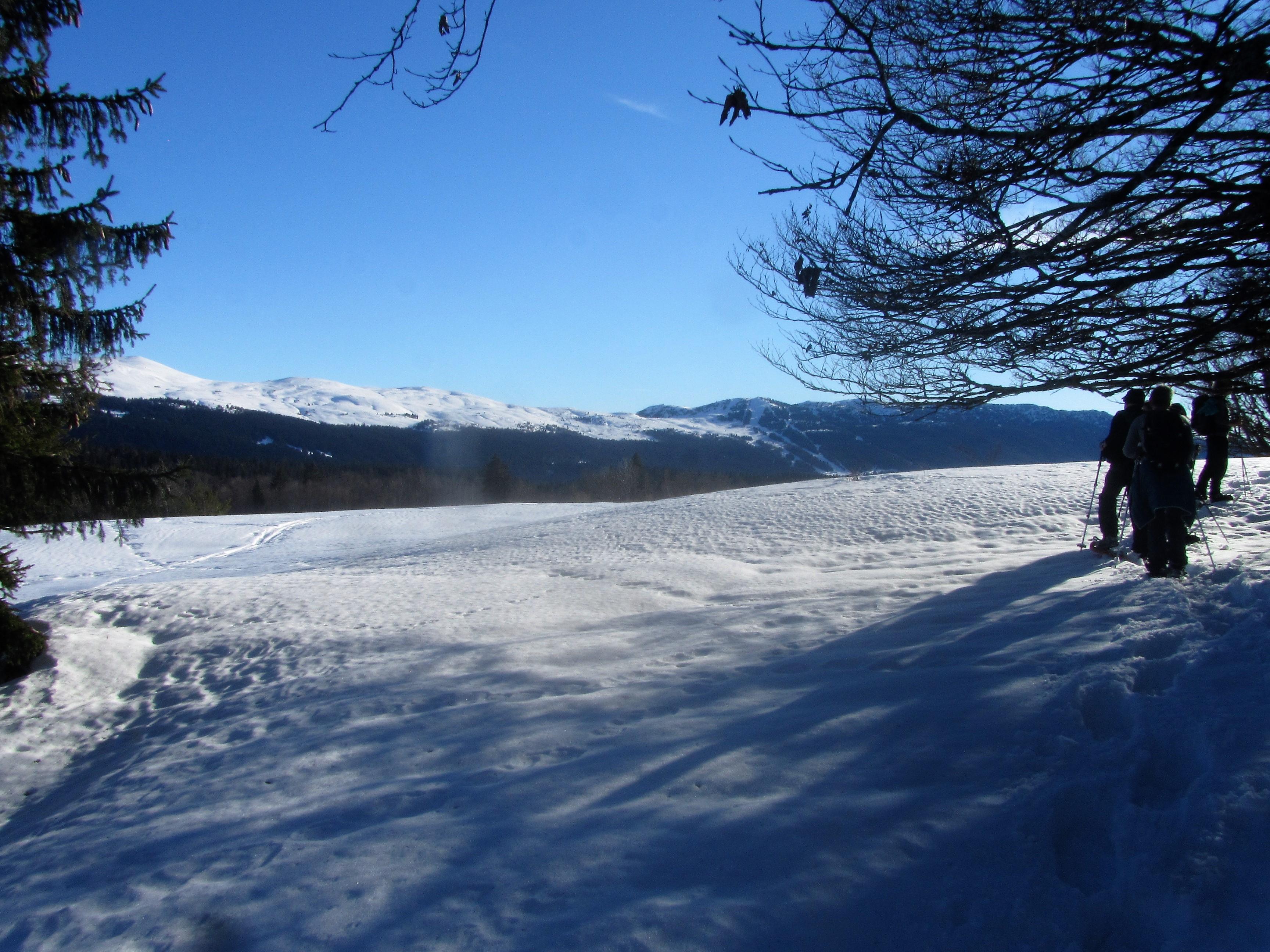 Un soleil éclatant nous accueille …. le parking est une patinoire; -9° remarqué après les Moussières, mais le thermomètre fait du yoyo..