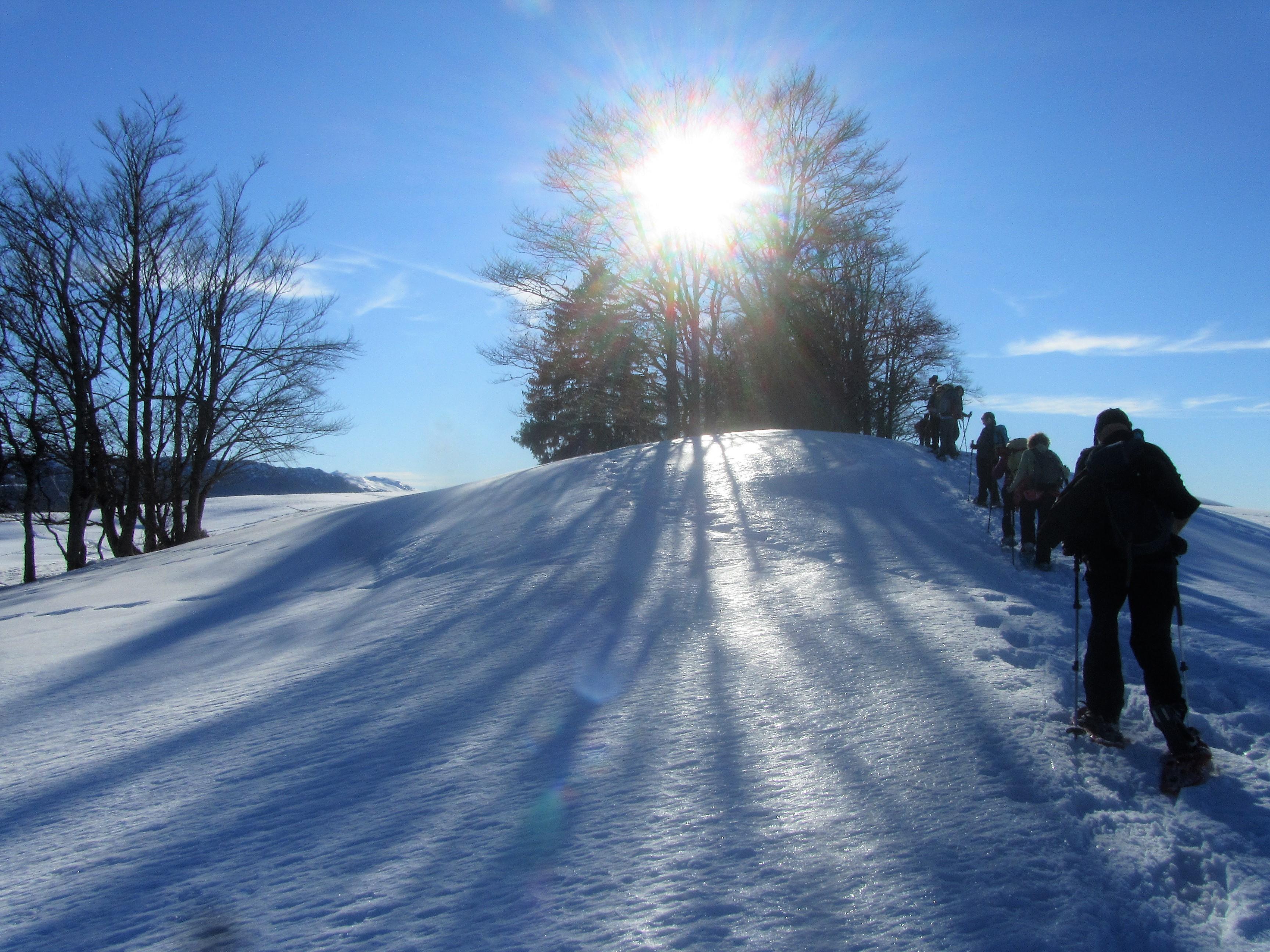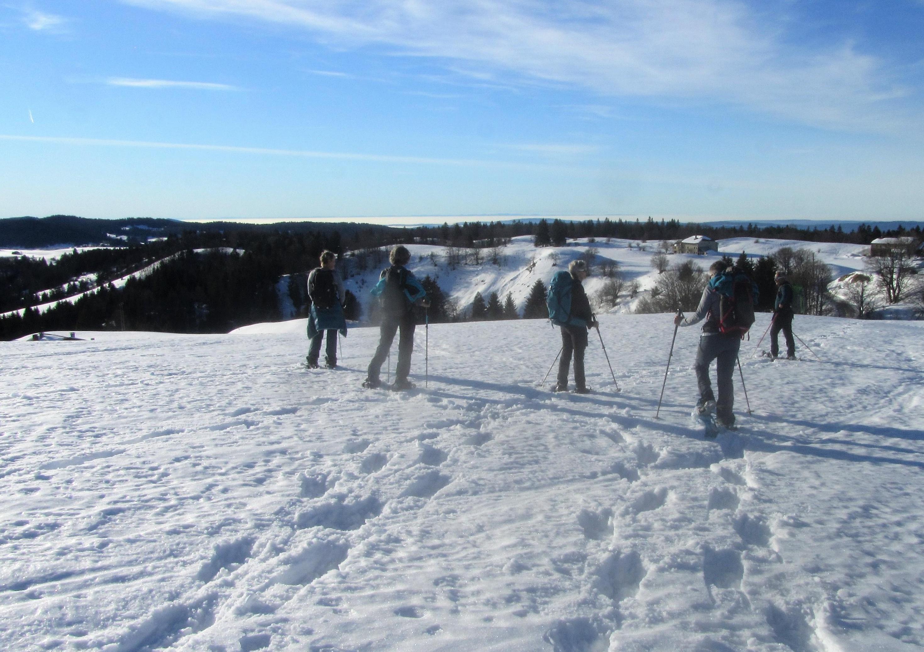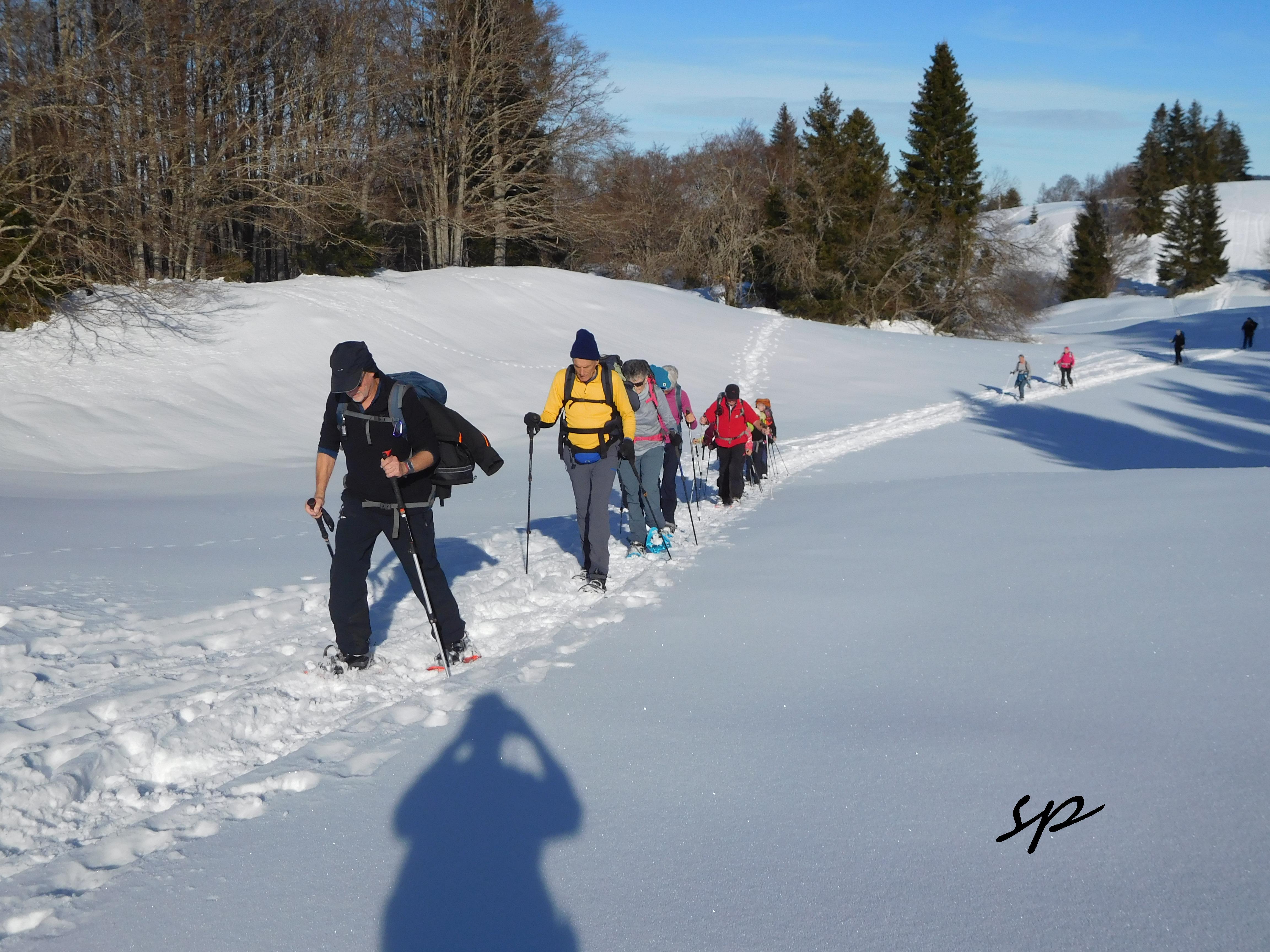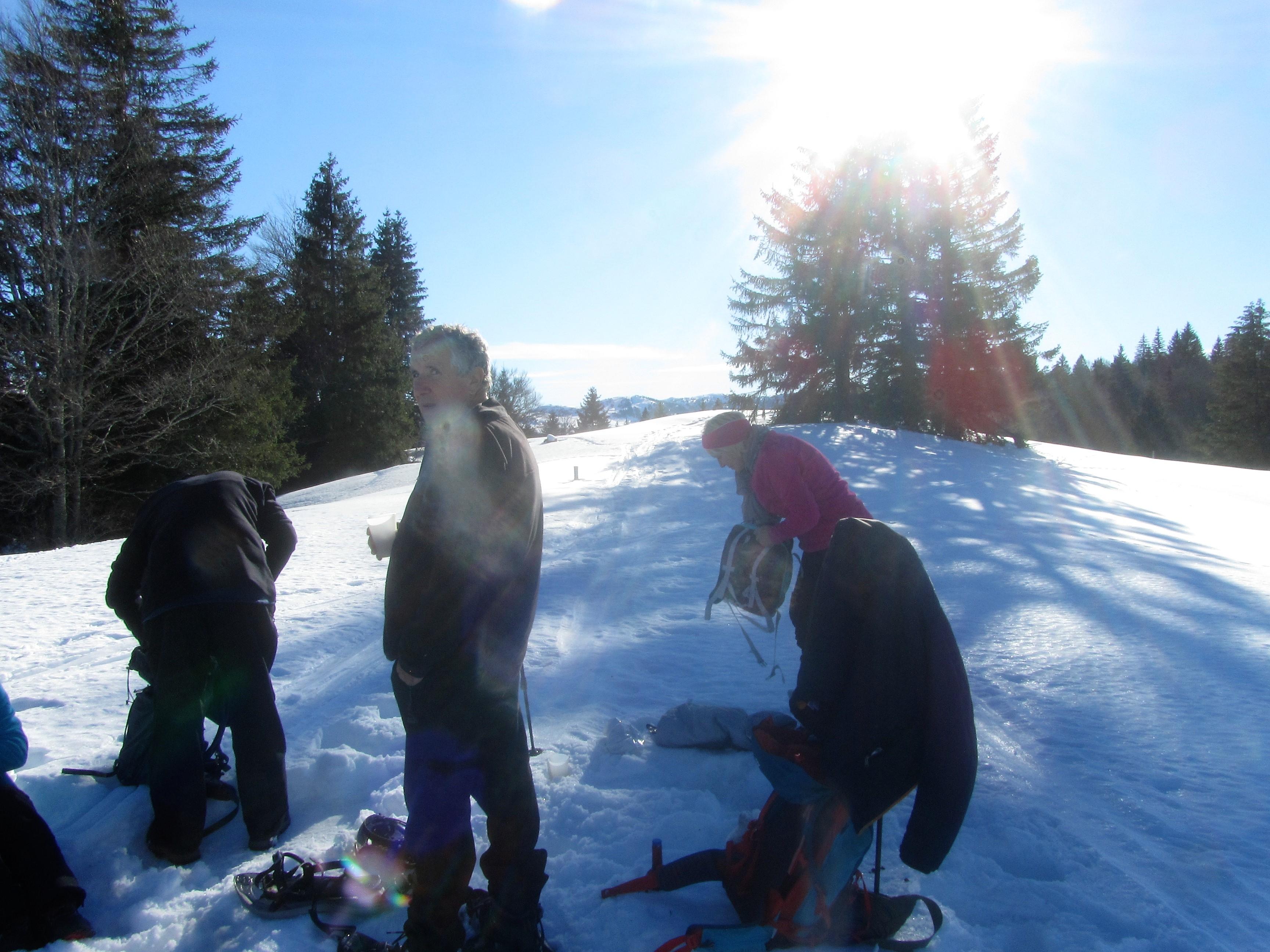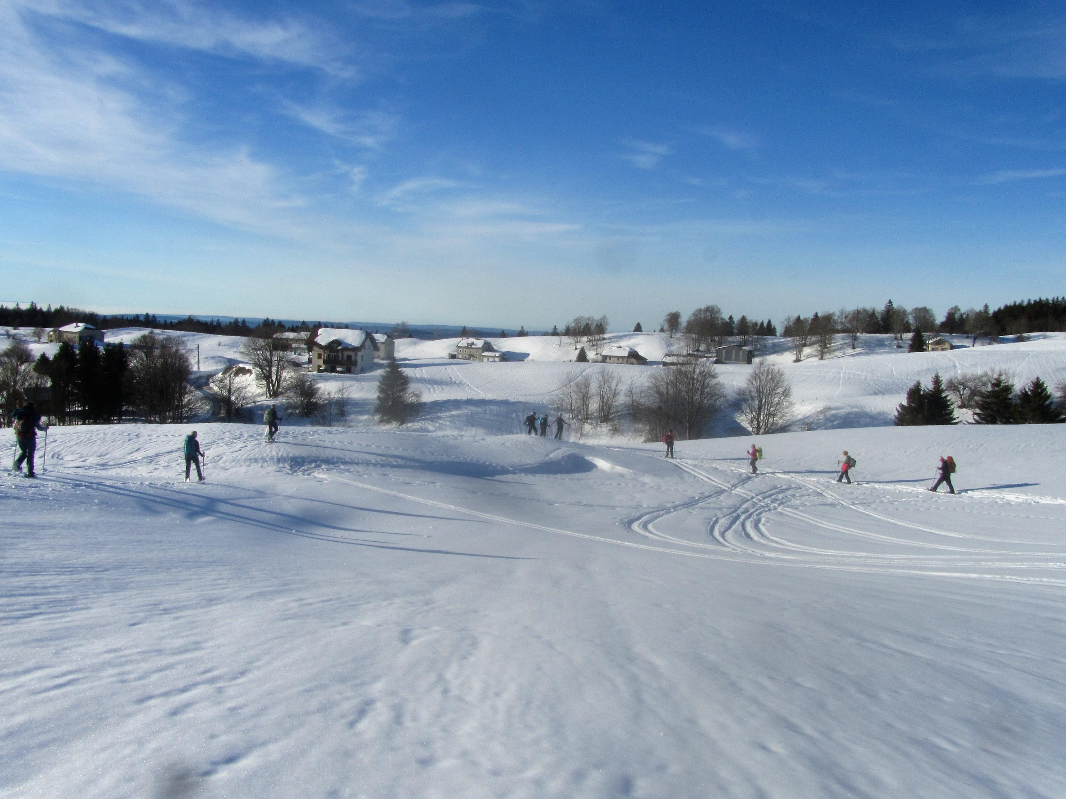 Un soleil éclatant nous accueille …. le parking est une patinoire; -9° remarqué après les Moussières, mais le thermomètre fait du yoyo..