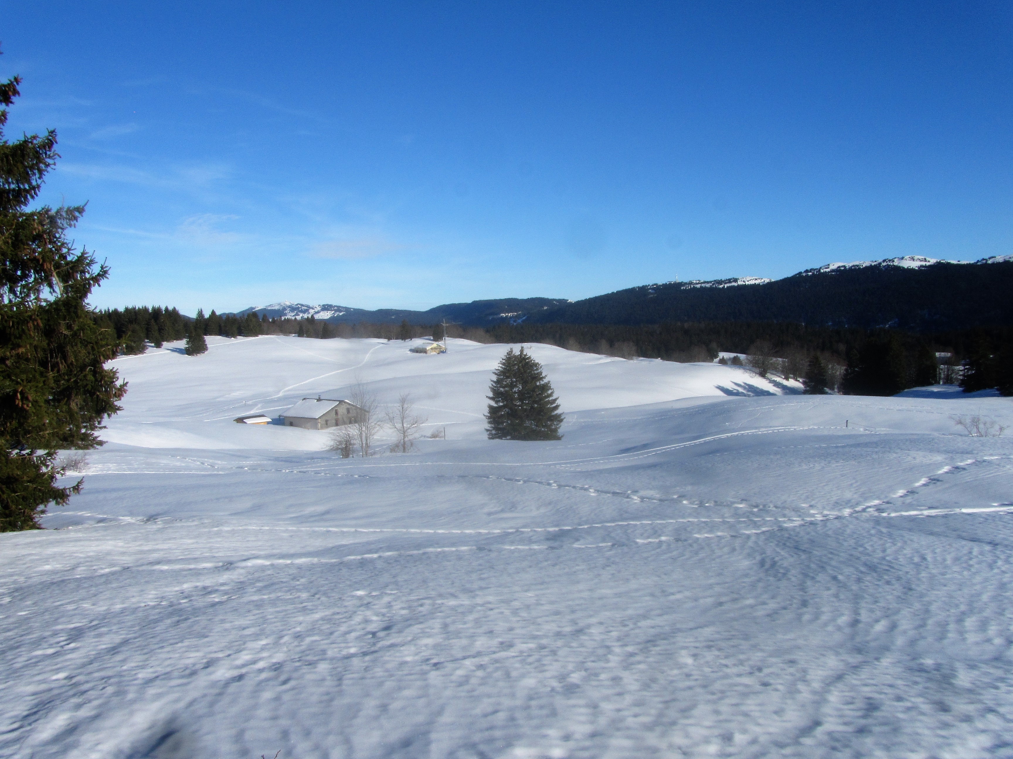 Azimut 45°, en alternance de bois épars, de larges clairières, de neige vierge de traces ( 1 mètre par endroit) . Personne en vue.