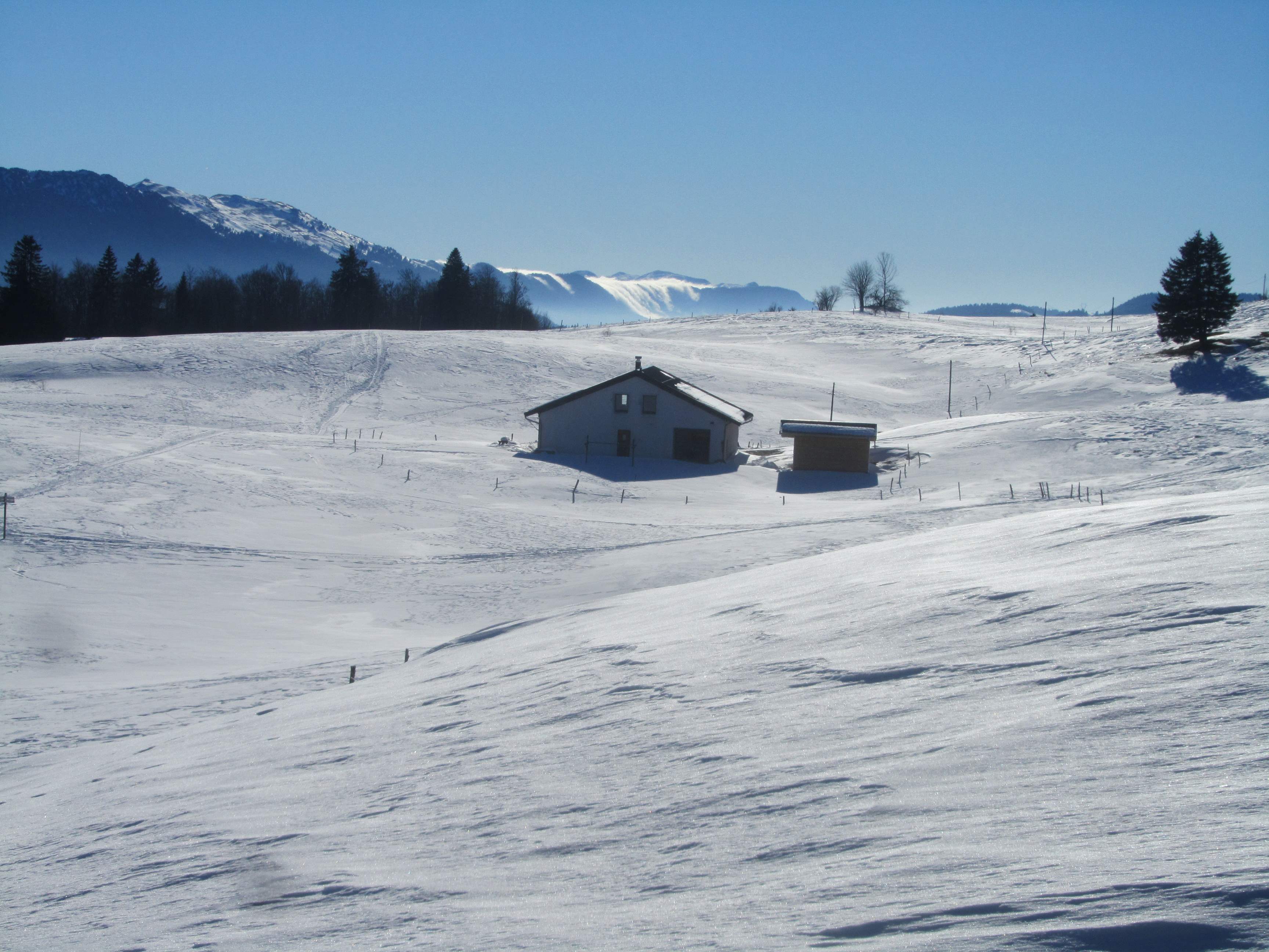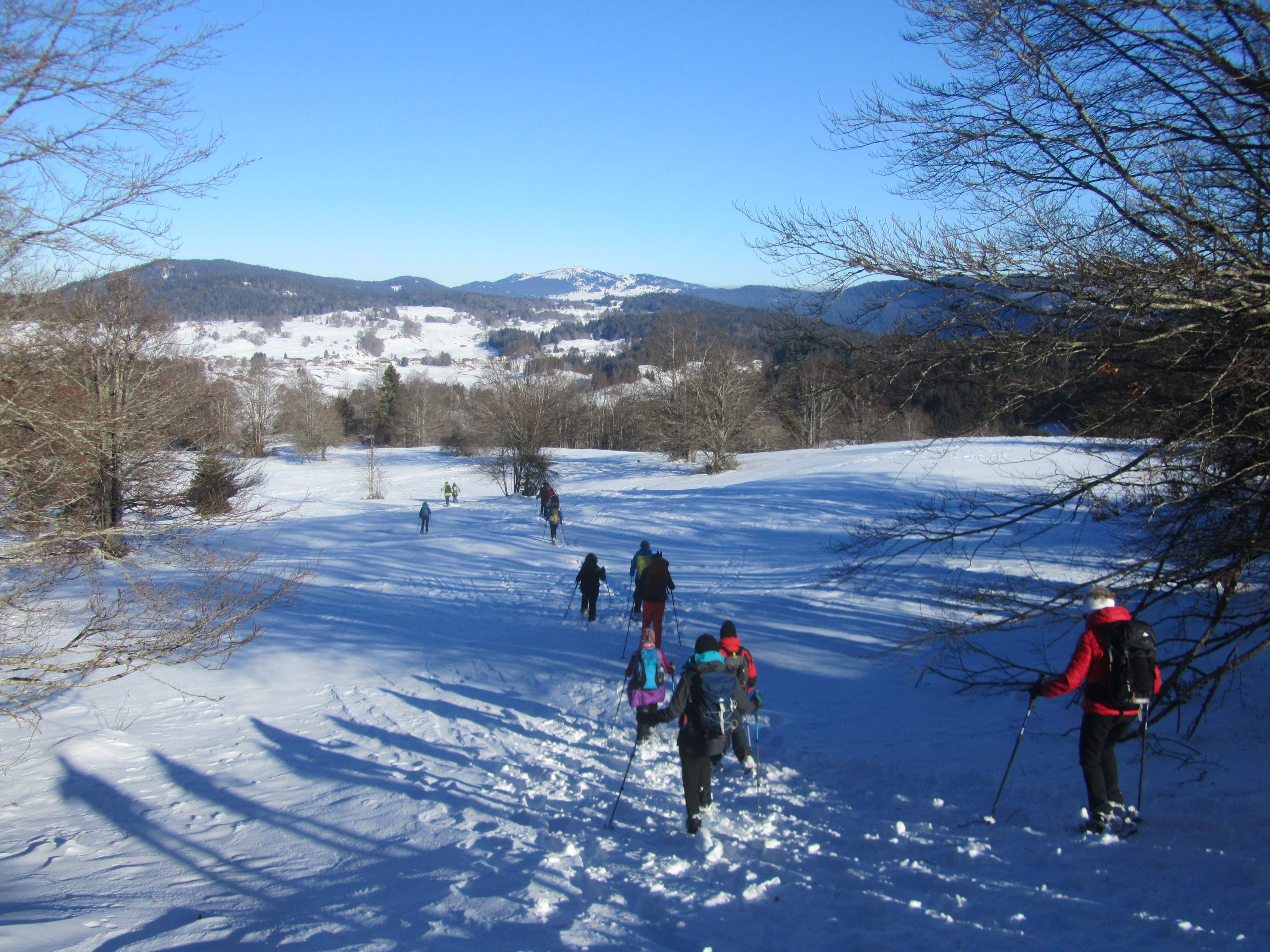 Pas question de rester ici ! Sauvons nous vite et allons découvrir, pour certains, la route touristique, « annoncée non salée » entre Menthières et Chezery ; de belles congères agrémentent la descente.