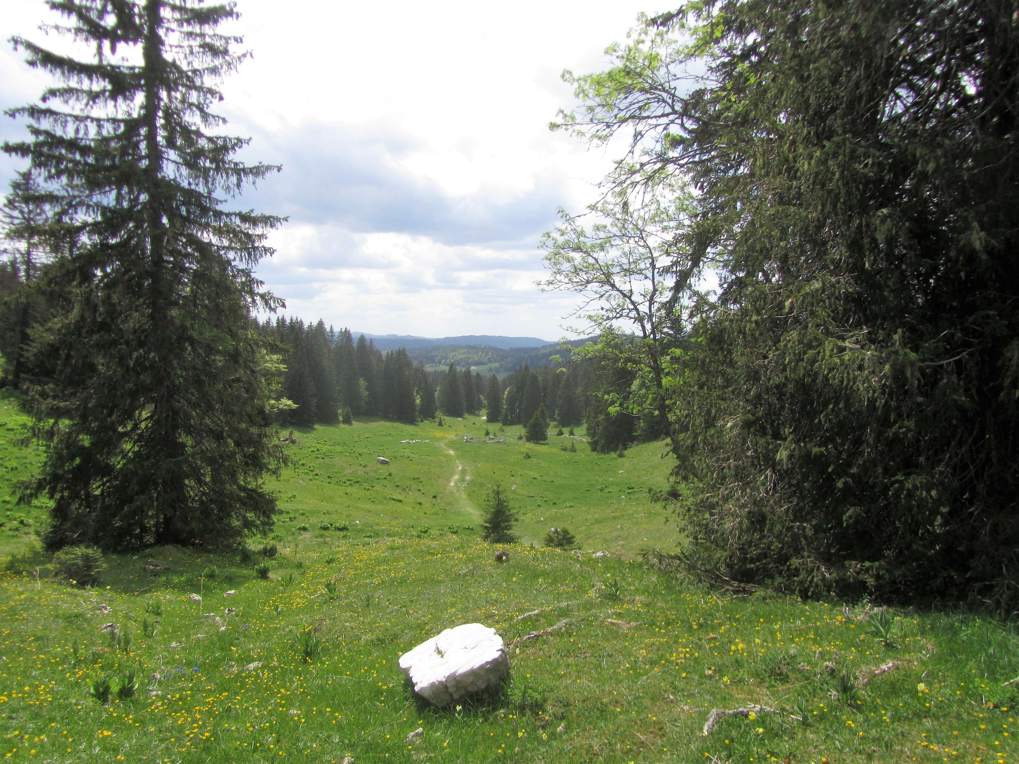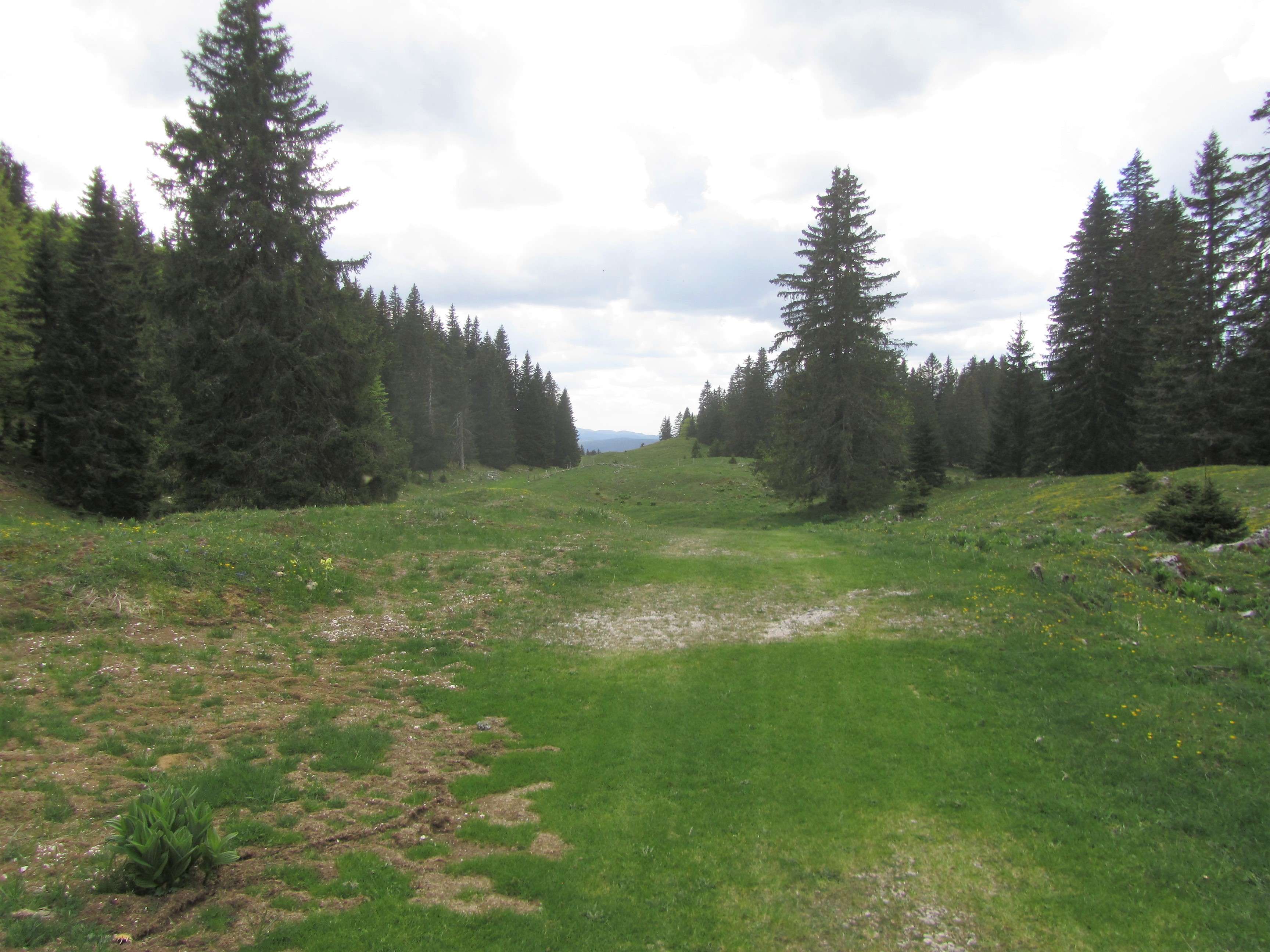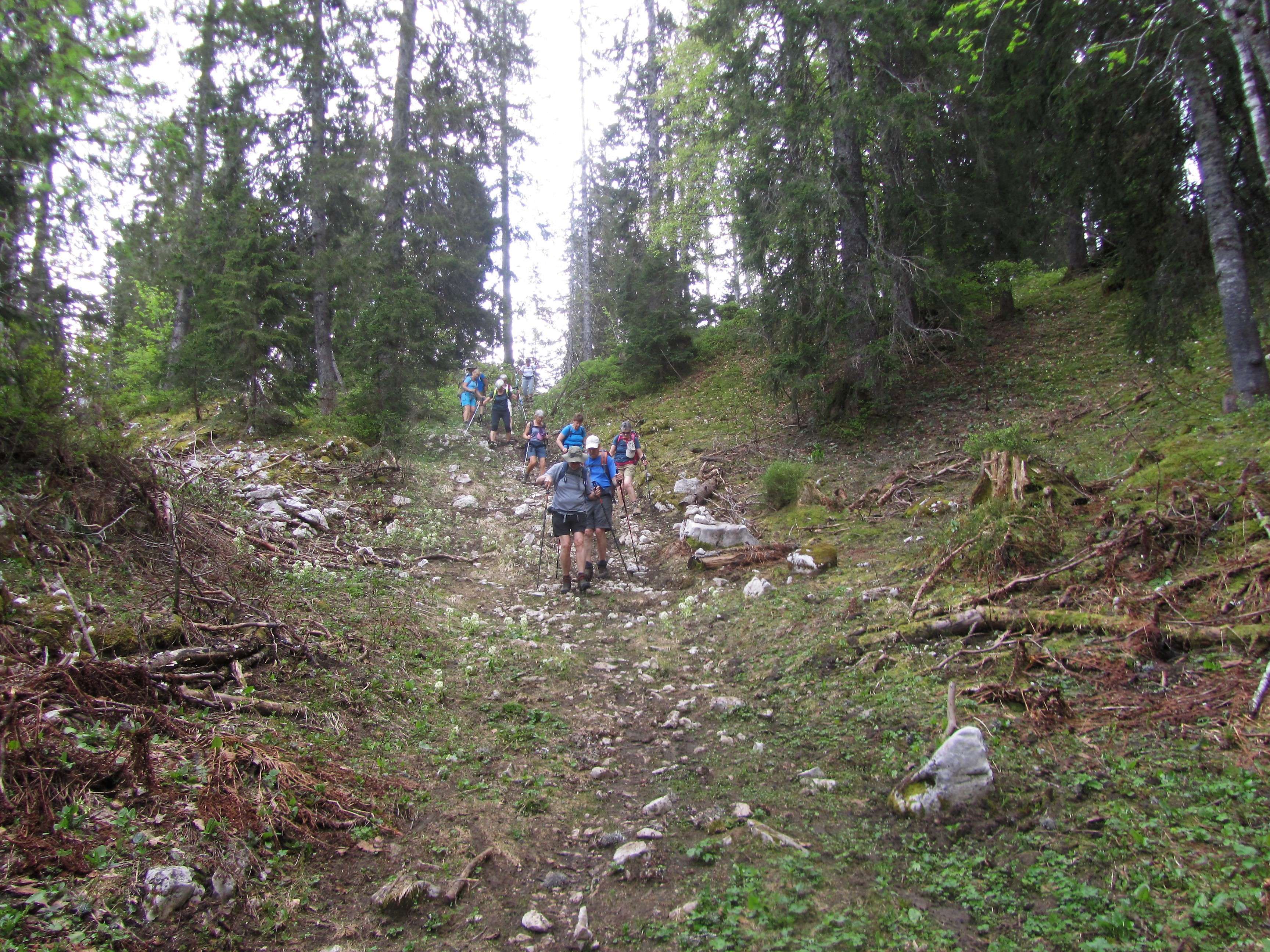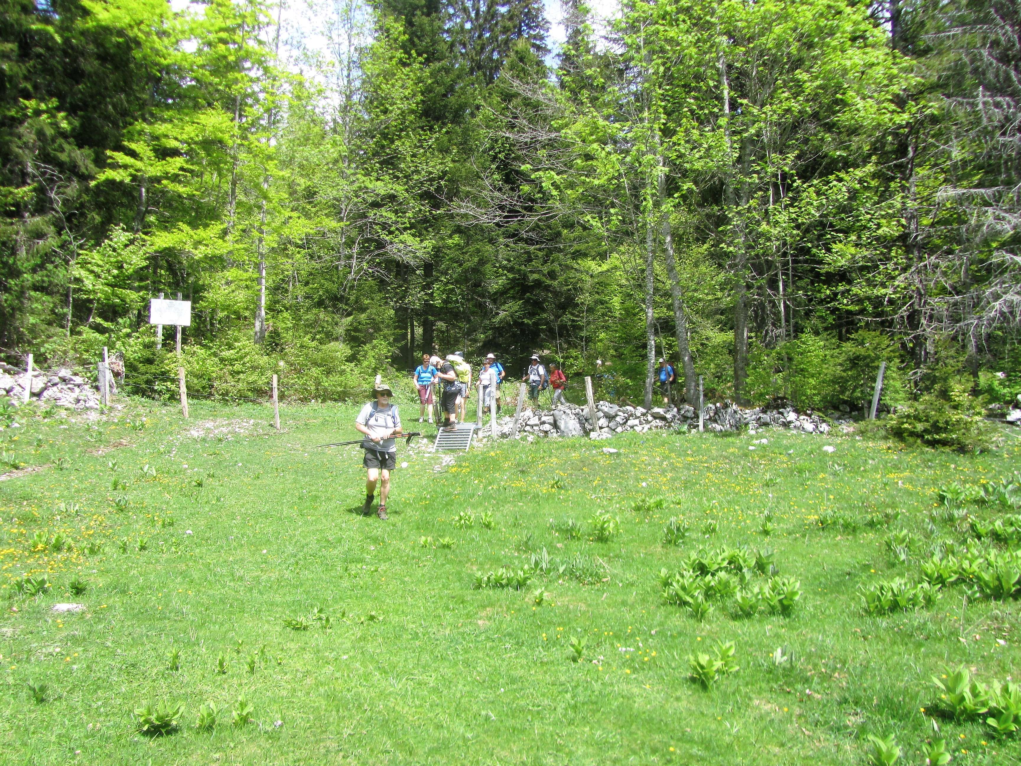 La protection hivernale est toujours applicable sur certains secteurs, et il faut rejoindre le chalet de la Frasse, non sans descendre … descendre encore sur un chemin pentu et caillouteux ! Passage au Golet Carret, à l’épicéa muté avant de gagner le chalet de la Combe à la Chèvre….. pause pic nic!