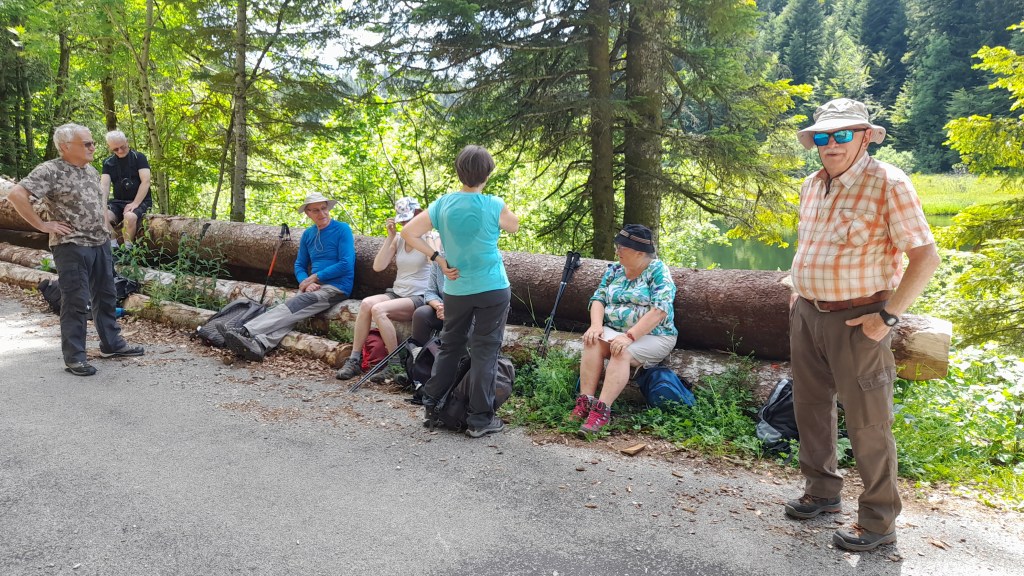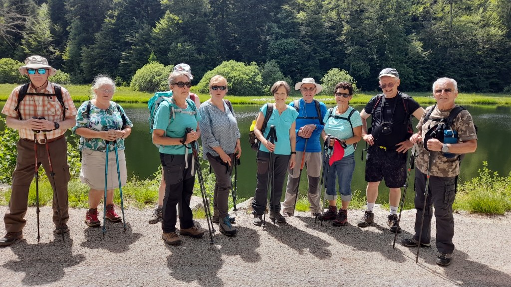 C’est avec un beau soleil que 11 personnes ont commencé cette rando par le bord du grand lac jusqu’à son extrémité, puis un petit coup de chaud pour atteindre la crête de la Séa ,nous longeons celle-ci bien à l’ombre pour descendre sur la route forestière retrouver le lac de la Fauge .