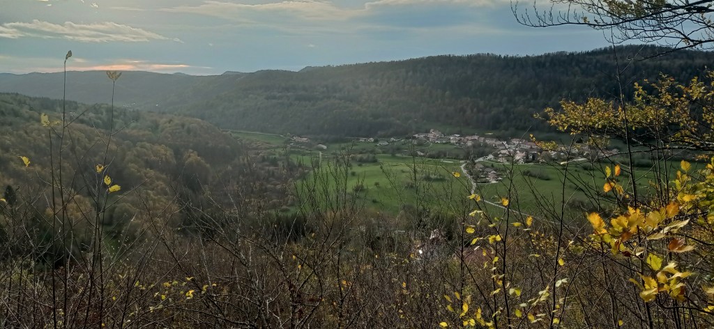 Nous étions 15 randonneurs pour parcourir cette vallée peu connue du jura sur 8 km et 250 m de montée. Cette randonnée du Parc Naturel du Haut Jura a l’intérêt de faire connaitre le petit village de Leschères, les hameaux de Vichaumois et Angelon, les points de vue sur la vallée de la Bienne parcourue 15 jours auparavant et sur la vallée de Leschères (belvédère du Capet) et parfois des petits chemins dans de magnifiques hêtraies… Une très bonne après midi de randonnée calme!