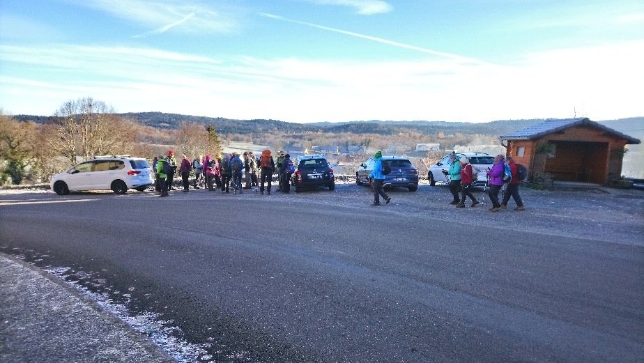 Belle journée ensoleillée avec 19 dames et 6 messieurs pour ce circuit bien sympathique frisquet au départ en direction du belvédère de la Scie et admirer la vue des deux lacs , continuons par des chemins faciles jusqu’au parc aventure des écureuils et le poursuivre pour rejoindre la route et l’intersection du chemin du Langard .