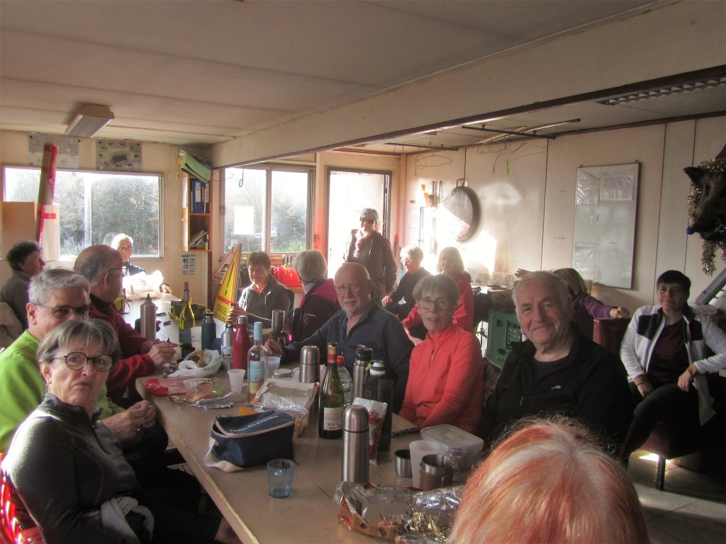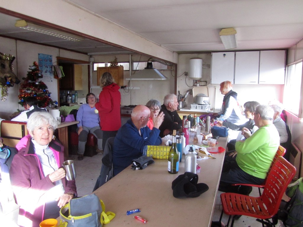 3 heures sont passées et c’est la pause…. une partie du groupe décide de manger dehors…. l’autre à l’intérieur de la cabane des chasseurs…. chauffée ; merci à eux !