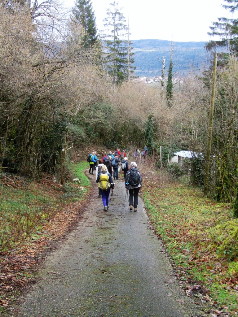 La descente du Facteur risque d’être compliquée…. raide et glissante ; je choisis le bois de l’Haya.