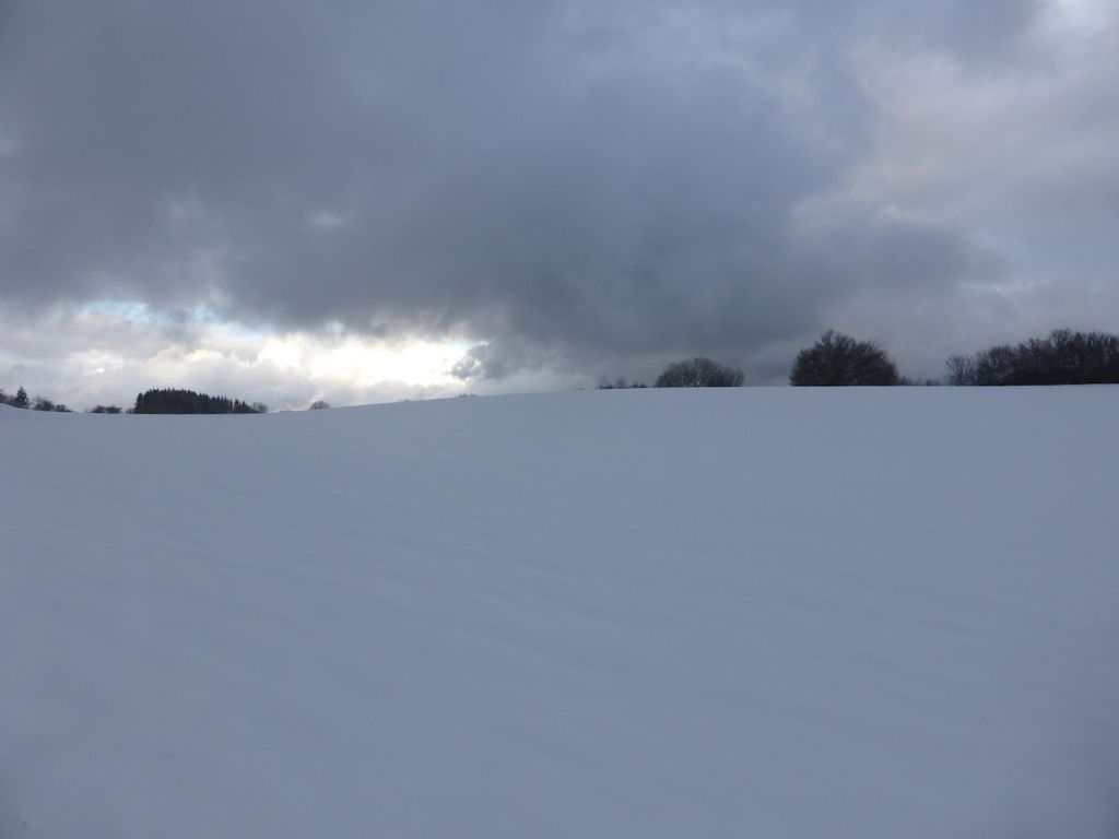 Petite sortie dans la neige pour nous 6 dames et moi : il pleut sur Dortan et Oyonnax et 300m plus haut nous voilà dans la neige, entre 15 et 20 cm dans les champs, un peu moins en foret. Un peu de grésil en démarrant et en revenant le tout sous un ciel très changeant mais de belles images d’hiver tout au long du parcours. Le choix est fait de marcher sans les raquettes, nous voilà partis pour 3 h 30.