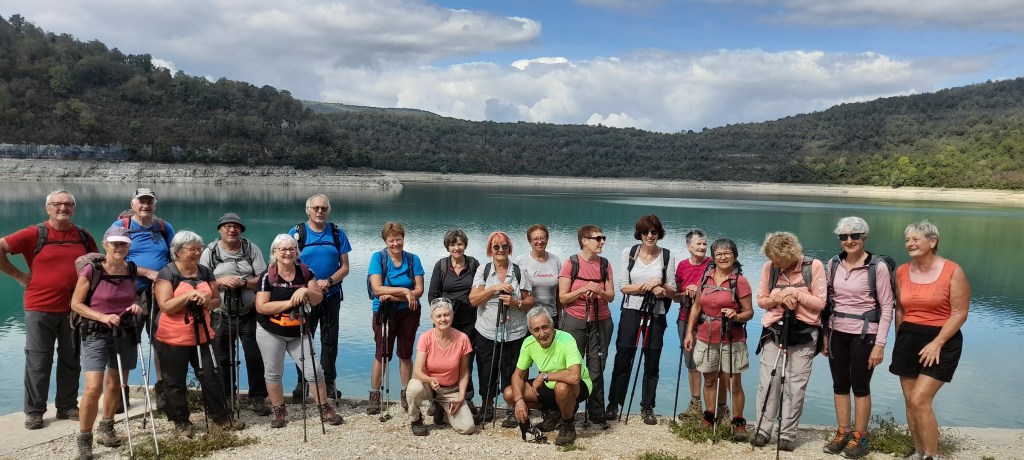 Nous étions 17dames 4 messieurs pour ce départ de Menouille en direction de vouglans , une rando sans difficulté juste une petite montée sur le chemin de la messe avant d’atteindre le belvédère du barrage et une pose .