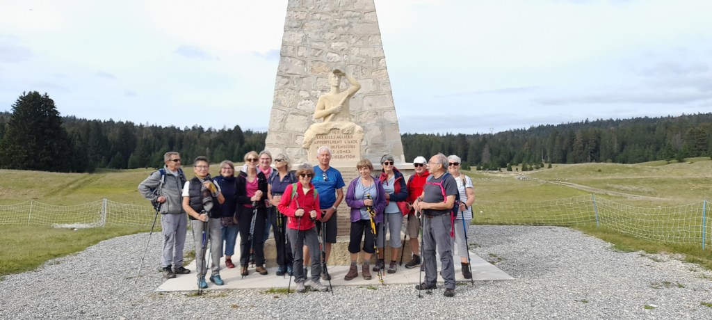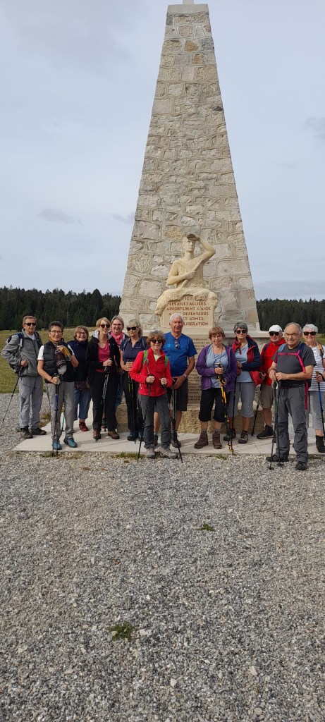 Encore une bonne balade pour 9 dames et 5 messieurs en direction de la prairie d’Echallon en sous-bois avant d’arriver à la célèbre prairie où s’élève le monument du maquis , là eurent lieu des parachutages d’armes et vivres le 1er août 44 , puis retour par la route principale pour rejoindre les voitures. .