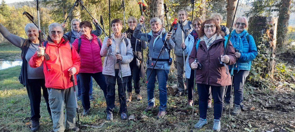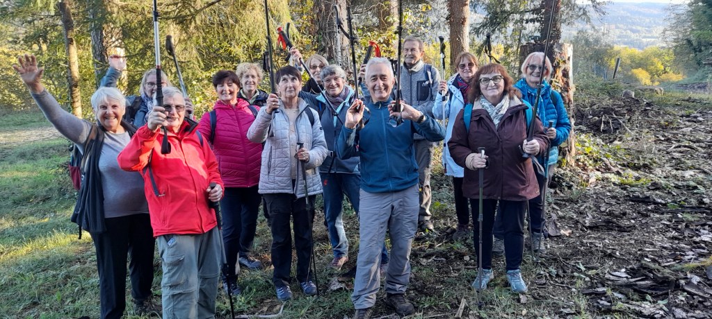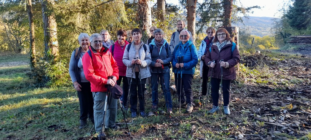 Belle après-midi ensoleillée pour 10 dames 3 messieurs sur ce parcours de 4 km sans encombre , juste une petite histoire amusante au moment des photos du groupe , 2 dames se proposent gentiment de le faire mais malheureusement impossible de nous glisser dans la boîte, donc nous demandons à une personne qui passait par là de prendre la place de ces dames et là ouf photos réussies mais voilà cette personne nous annonce qu’elle est sourde , bien entendu éclat de rire pour tout le monde .