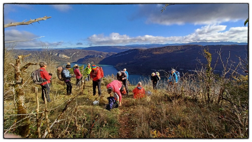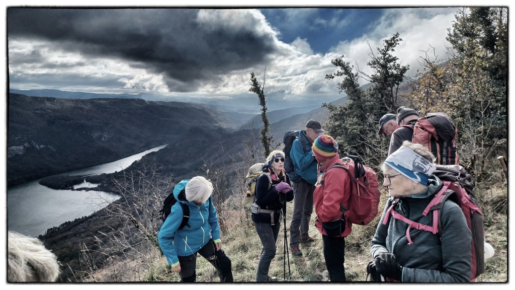 Nous étions 14 dont 4 hommes pour l’ascension jusqu’au château d’Olifernes depuis « les fours à chaux « . Montée assez raide au départ en passant au dessus des roches, vue sur la vallée de la Valouse puis nous voilà au fort. Le vent glacial nous chasse rapidement, nous prenons alors le chemin des crêtes et trouvons un bel emplacement pour le repas, vue sur le lac de Coiselet, le Mont Blanc à l’horizon et le SOLEIL. Descente sur Boutavant puis montée sur le Molard de la Justice et retour par la ferme de Glaffant.