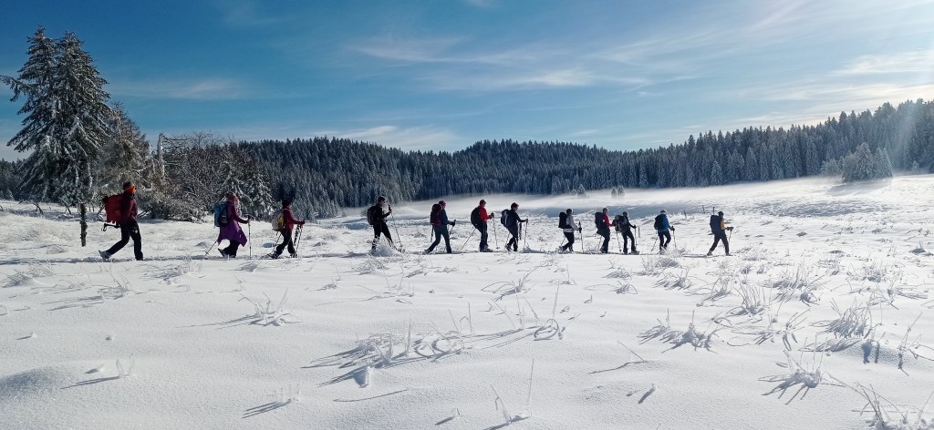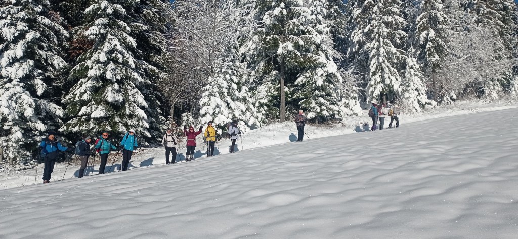Une parenthèse enchantée … C’est l’expression qui me semble résumer la journée d’hier, même si les passages techniques rencontrés ont fait que tout le monde ( 13 femmes et seulement 2 hommes) était bien fatigué pour finir! Pour une première sortie, 9 km et 250 m de montée parfois raide, c’était bien suffisant! Les photos qui suivent vous aideront sans doute à supporter le bruit de la pluie actuelle!