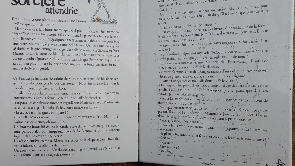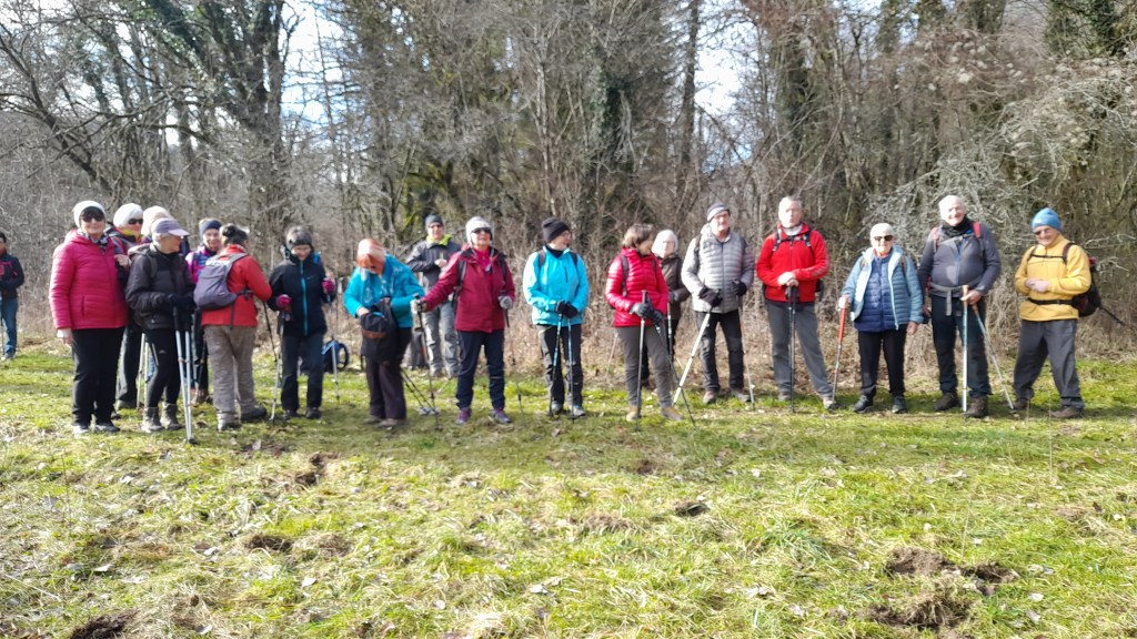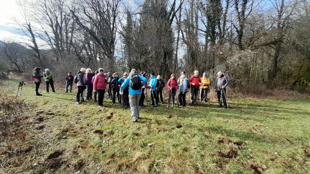 Nous étions 24 18 dames 6 messieurs pour ce départ avec le soleil en direction de Vaux en passant au-dessus de la Ferme de Plana et le sentier de la sorcière Attendrie un des sept contes en balade , ensuite le pont de Vaux , nous traversons le village pour rejoindre le pré de la Clavelière , longeons la Bienne jusqu’au club canin et finissons aux voitures avec un ciel couvert et un commencement de pluie ☔