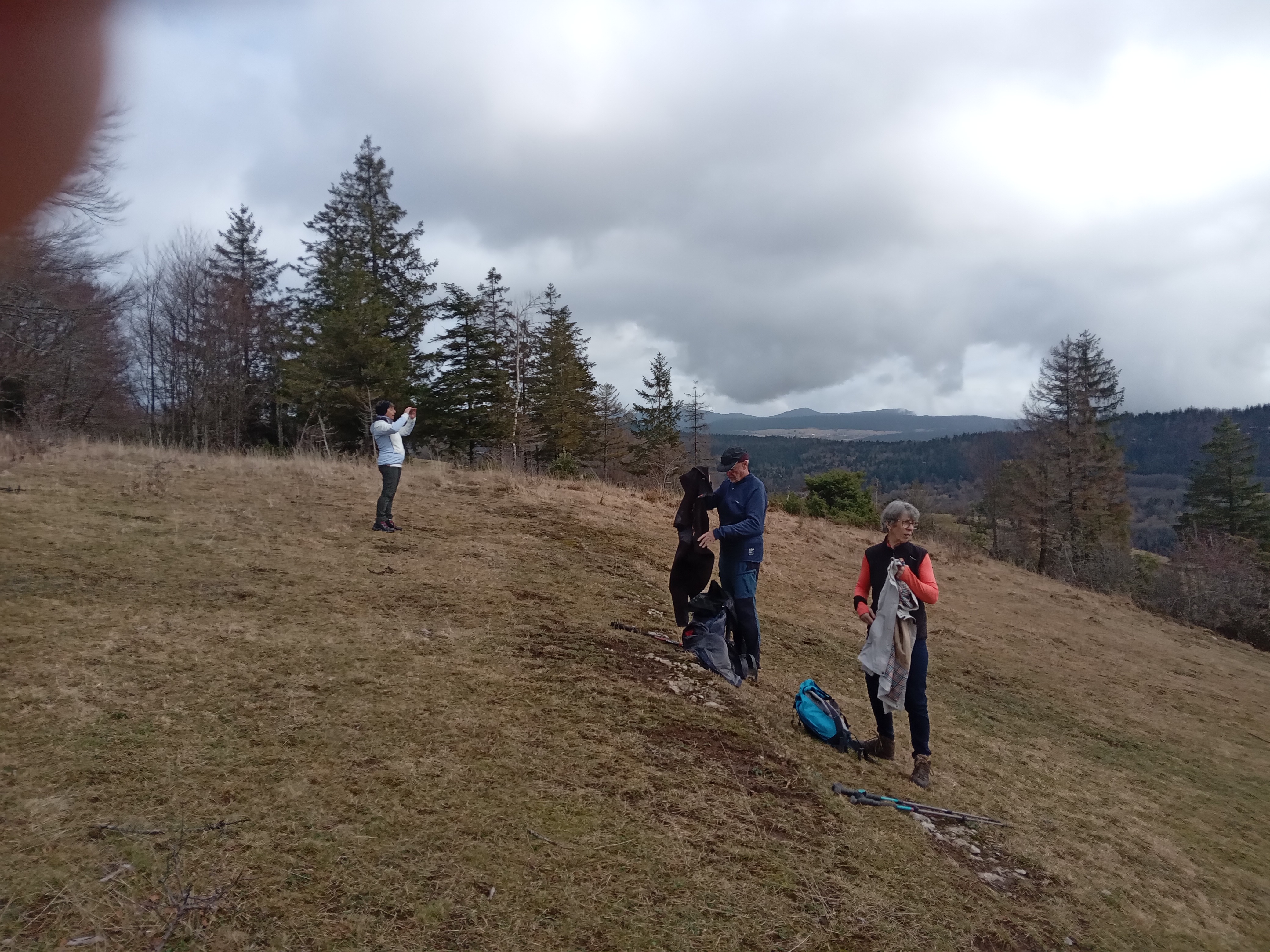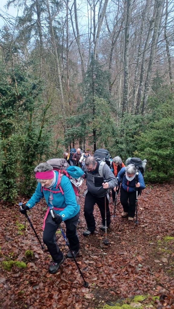 Pour ce mardi à la météo non engageante nous avons fait une nouvelle fois les falaises de Geilles version raccourcie avec le retour par Geilles et l’ancienne route d’Apremont. Nous étions 14 courageux dont 6 hommes. En réalité la météo a été clémente avec une température printanière ce qui nous a permit d’avoir de très belles vue sur la région.
