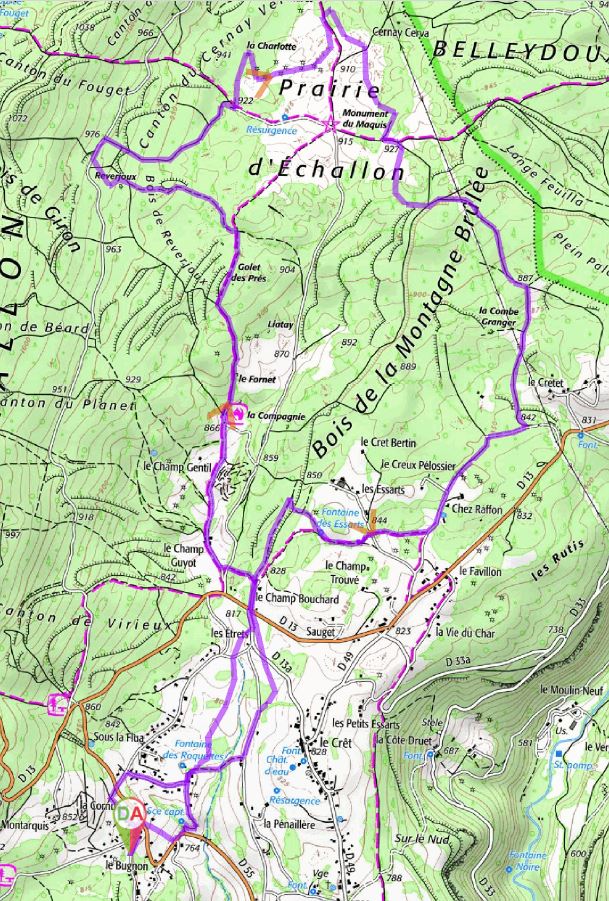 Belle journée malgré un voile d’altitude pour cette sortie hivernale ! 26 participants (5H, 21D) qui ont découvert quelques beaux sentiers ou chemins de la forêt d’Echallon et les nombreuses nouvelles coupes et plantations qui nous ont obligés à faire quelques détours. La température clémente même avec le petit vent du Sud dans la salle à manger a permis un repas au calme. Ci-dessous la carte de la sortie : 13,8 km et presque 300 m de dénivelée. Merci à tous et à bientôt. Daniel