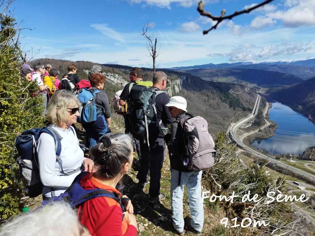Puis nous sommes repartis en direction du Montoux en passant par les roches de Sème (918 m). Belles vues sur le lac de Sylans, et les ouvrages de l’autoroute, tout au long du parcours.