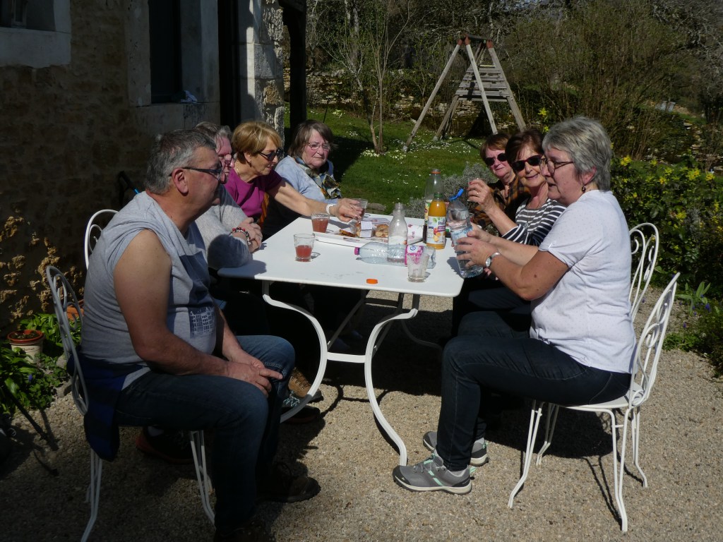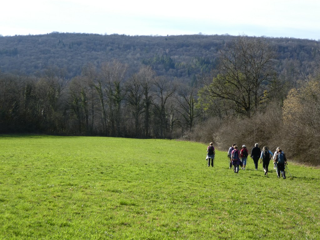 Nous étions 11 personnes (dont seulement 2 hommes) pour profiter d’une température douce, d’un soleil printanier et des paysages du plateau de Sénissiat. Merci Daniel pour ton information sur les anémones qui étaient bien là au rendes vous. On a fait halte à Vouais chez Annie et c’était bien sympathique. On a fini la boucle par des grands prés accueillants et une visite au ruisseau de Maissiat. Au bout de 4 km et 80 m de montée, il fallait à regret se quitter…..