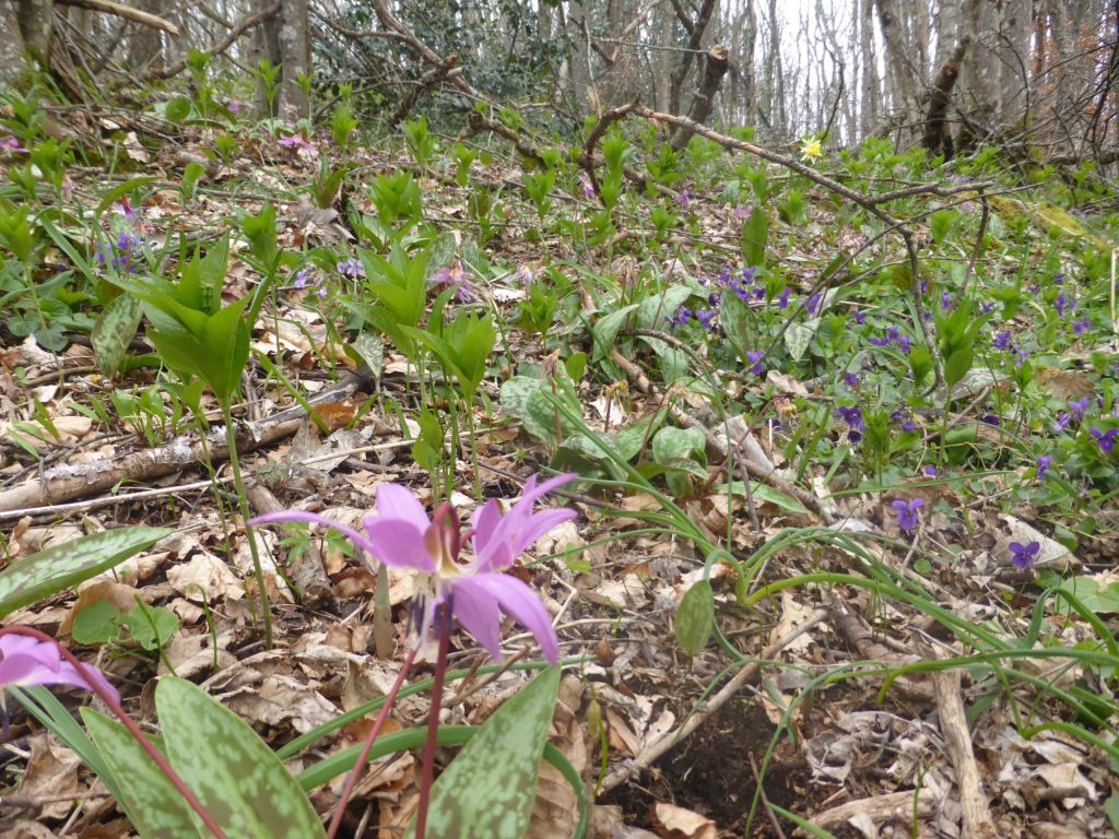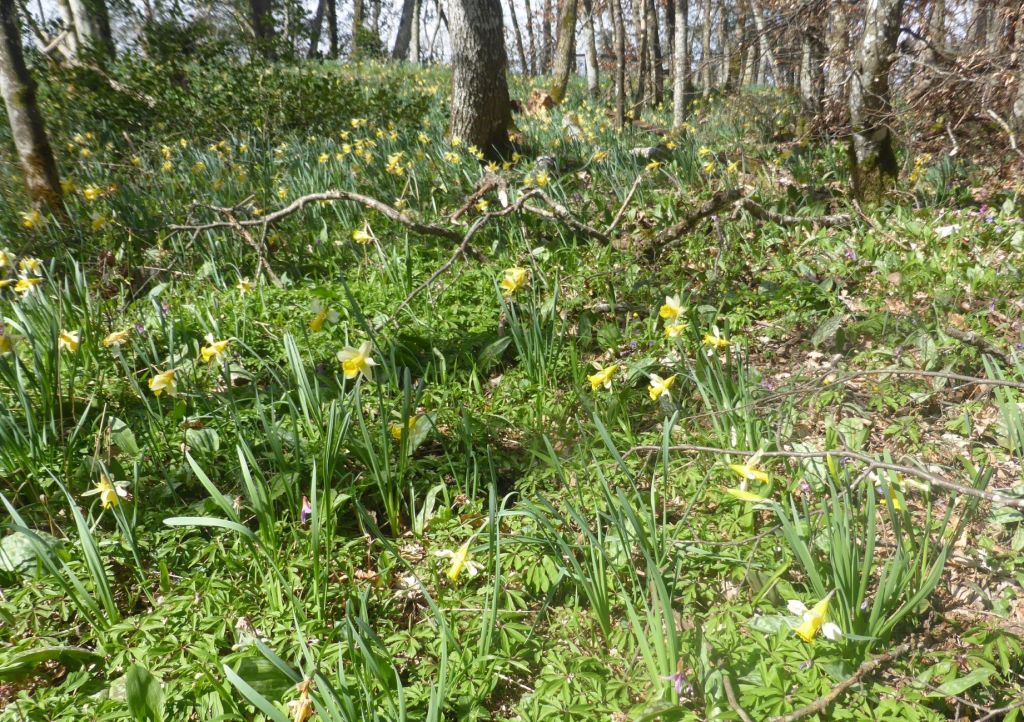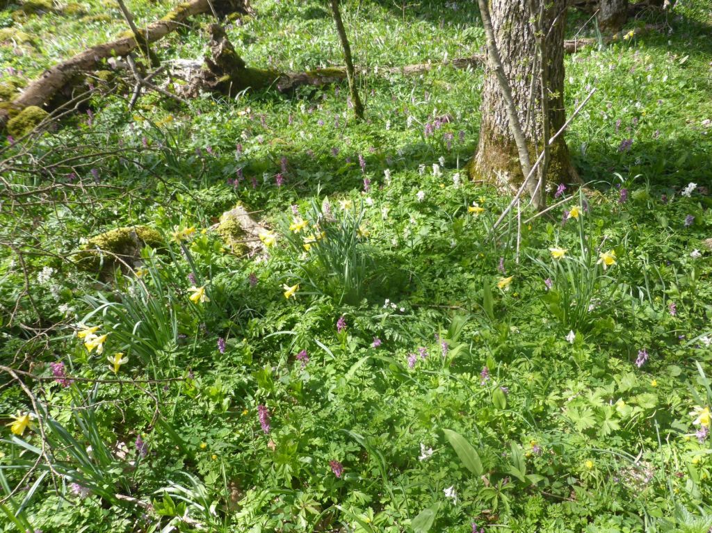 Arrêt au belvédère, dans les bois il y a des fleurs partout malgré le gel de la veille.