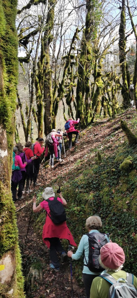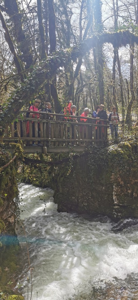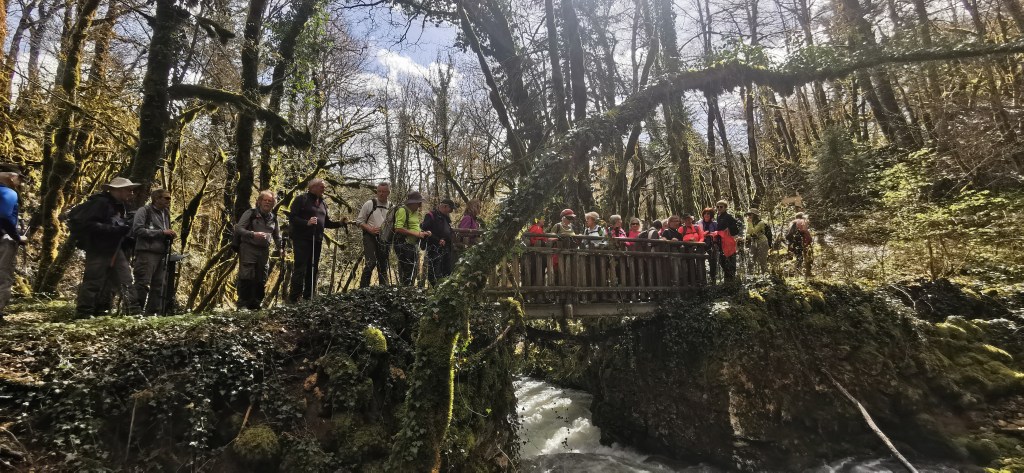 « Que d’eau! Que d’eau! » aurait dit Mac Mahon en voyant l’Héria en furie, habituellement si calme. Nous étions 26 dont 16 dames pour admirer la cascade du Griottier, sous un chaud soleil printanier.7kms et 230m de dénivelé mais quelques passages difficiles, ayant occasionné quelques glissades. Bernard