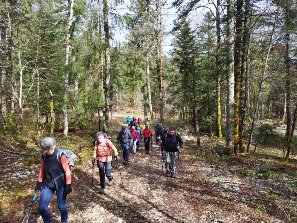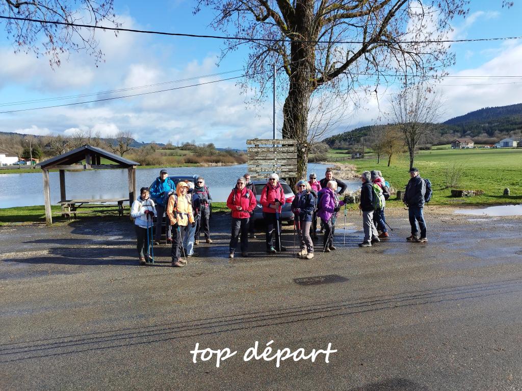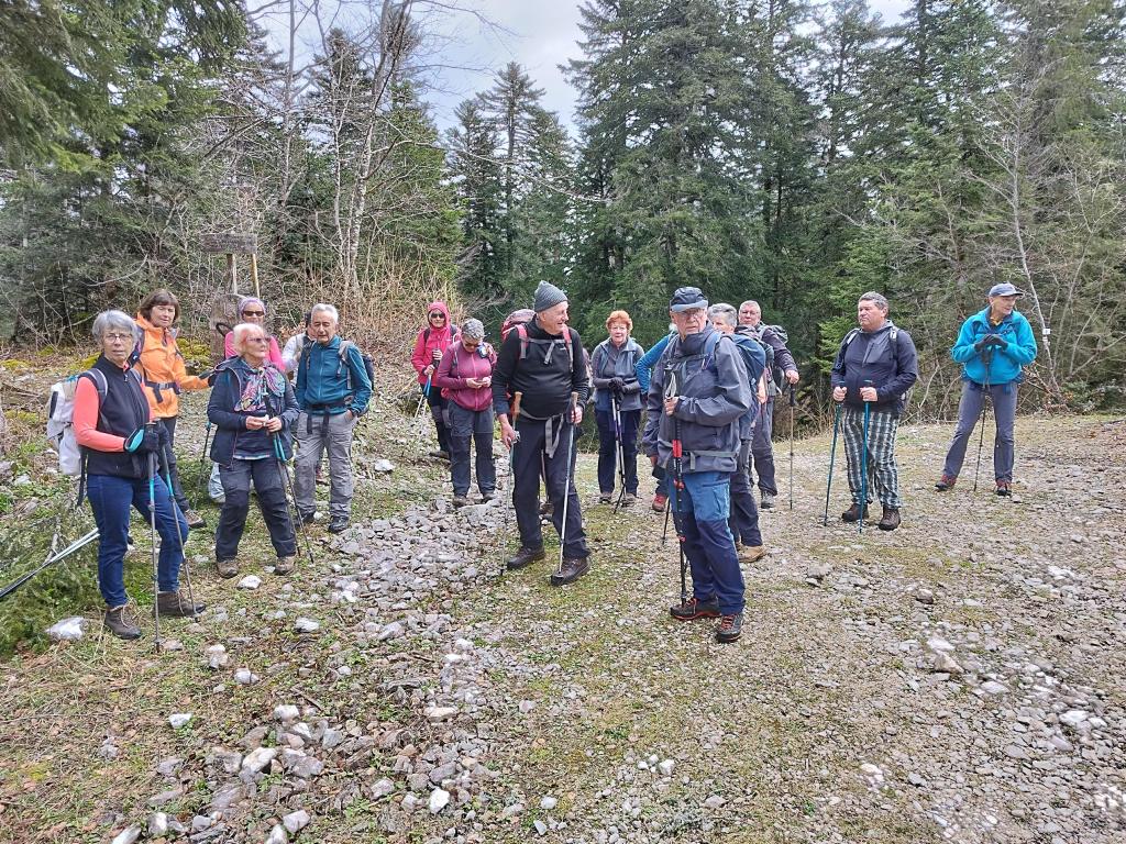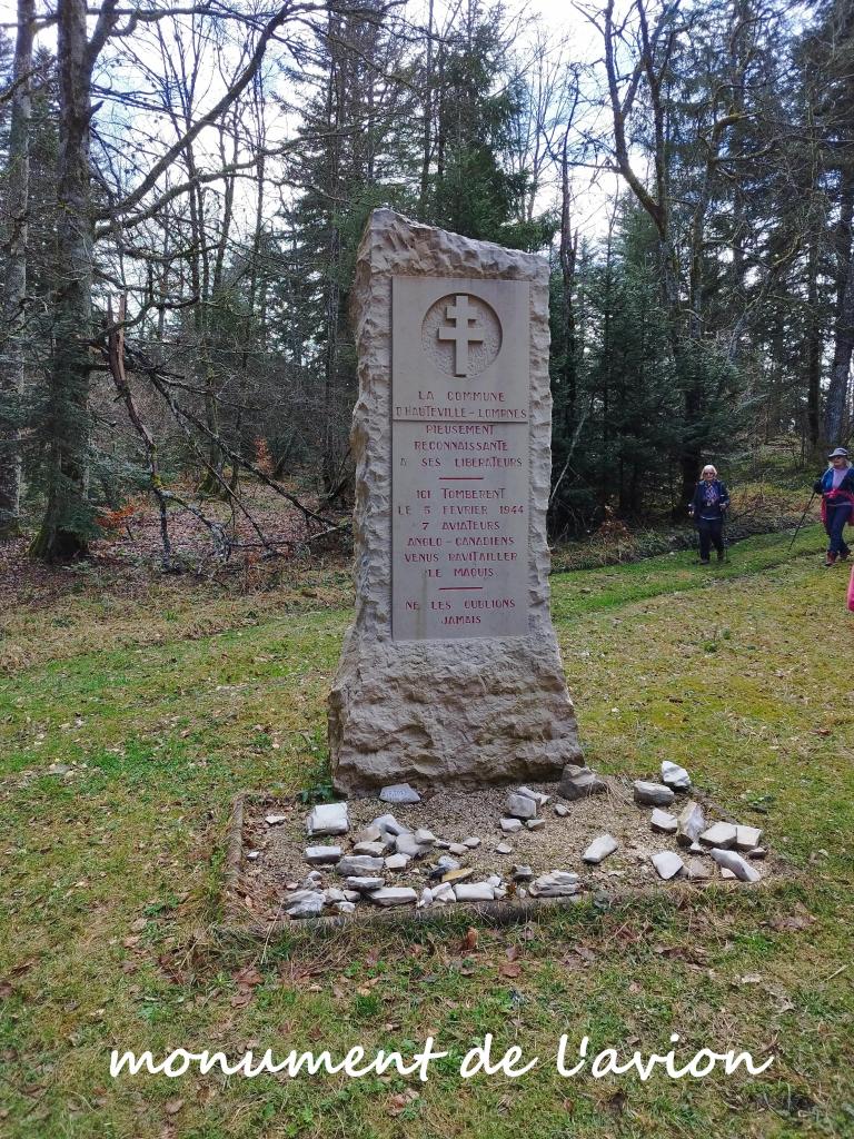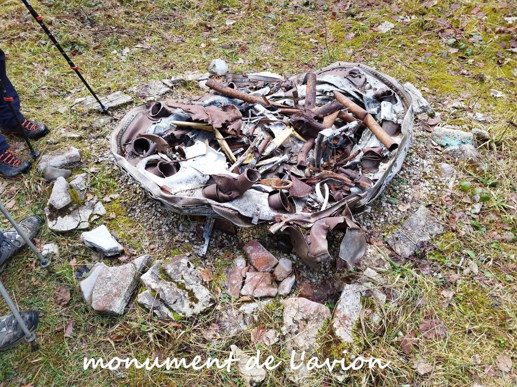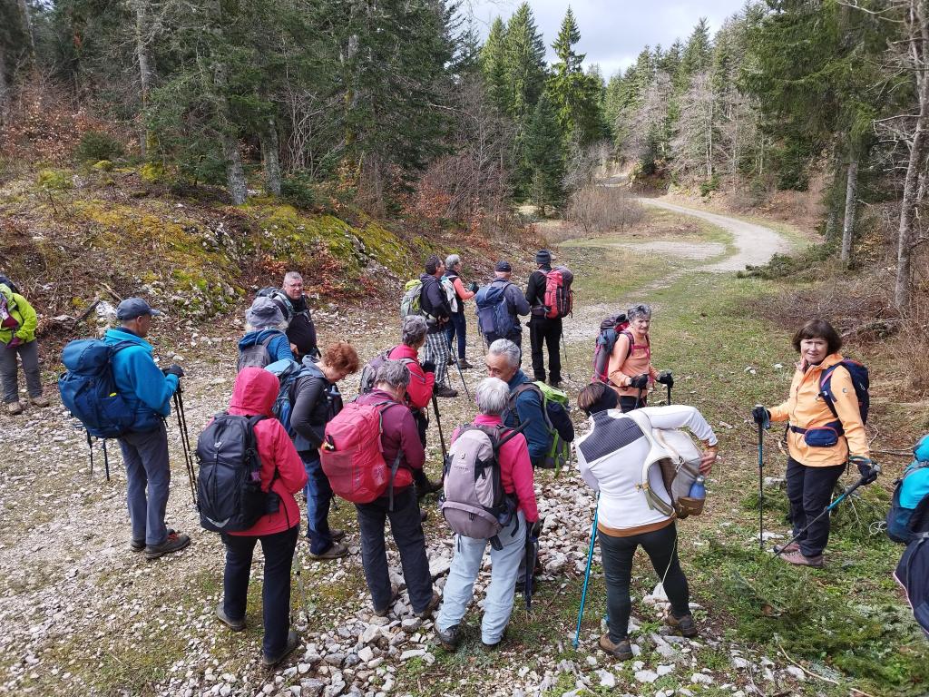 Nous atteignons, par la combe Brazier, le monument de l’avion avec quelques restes visibles !! le col de la Croix de l’Orme…. à 13h nous sommes à proximité de l’étang d’Angeville pour la pause « casse-croûte » avec tables et bancs. Le soleil revient… le thermomètre grimpe !!