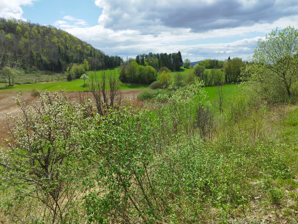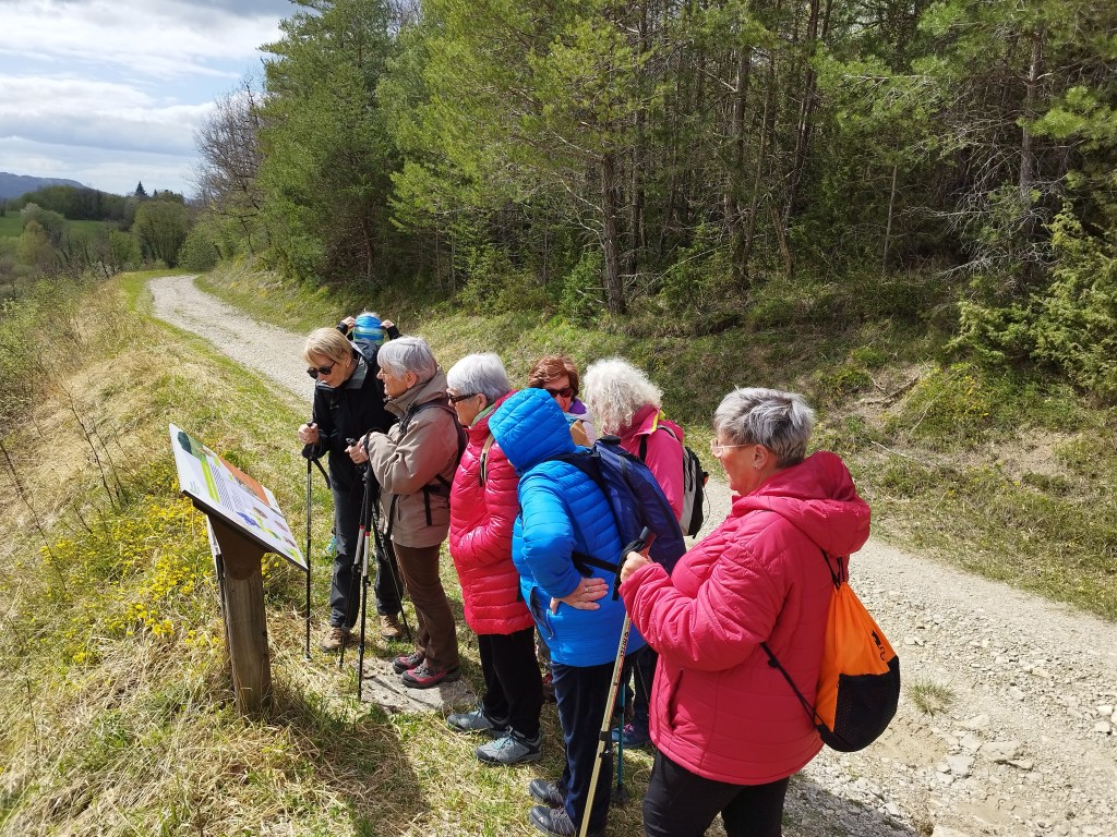 Départ de la cabane des chasseurs pour descendre vers la table de lecture et le marais sur les Ormes… Nous prolongeons un peu, avec au passage la cueillette de St Georges, pour apprécier ( encore) la belle vue au sud ! Tout au fond, la Montagne de l’Avocat reconnaissable avec les éoliennes.