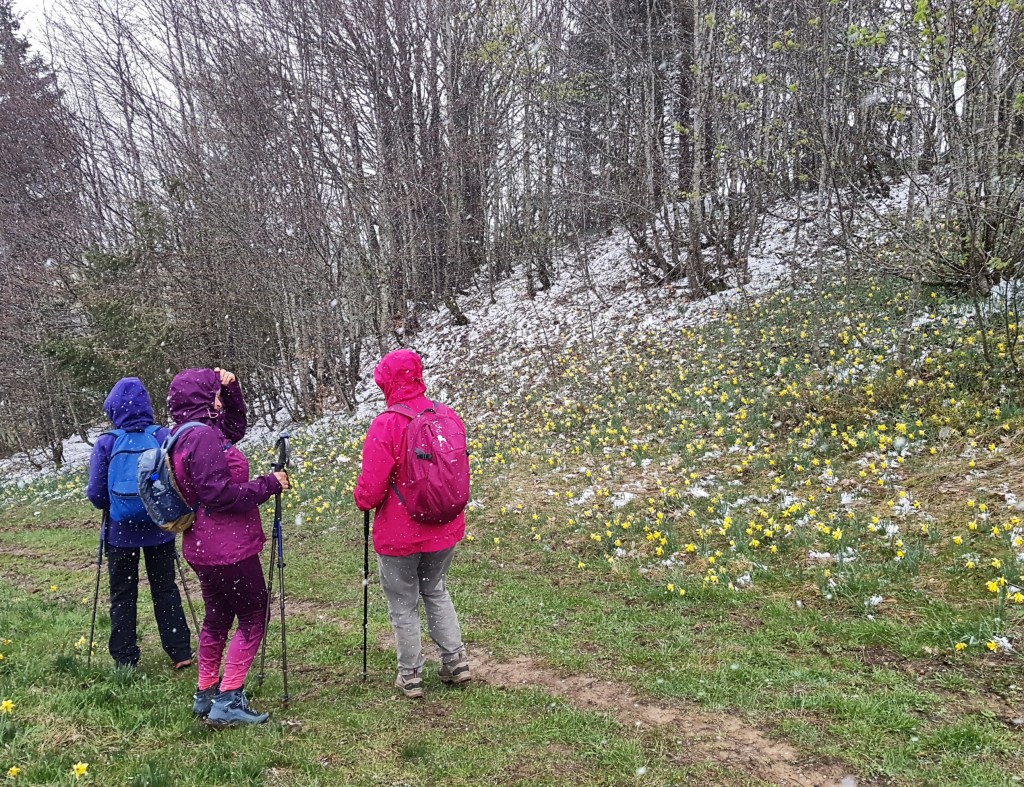 Par moment on aurait pu se croire en hiver en voyant les Mont Jura à nouveau blanc mais les nombreuses jonquilles nous indiquaient bien la présence du printemps.
