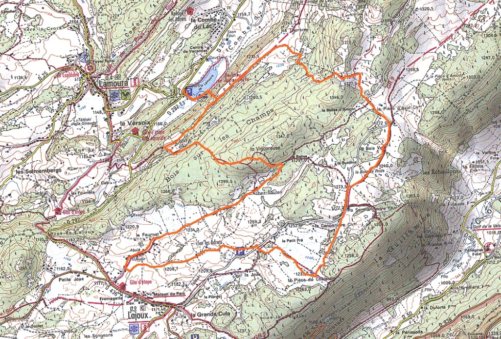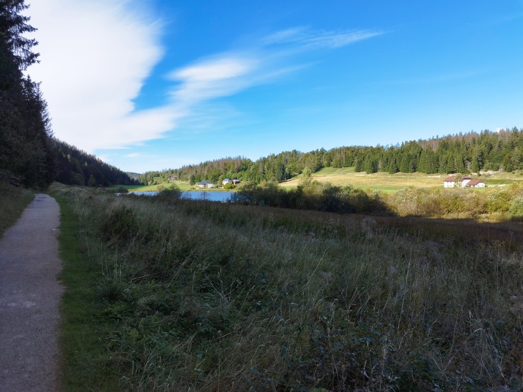 Départ en douceur autour du lac, petite grimpette au belvédère ( le nouvel aménagement en marches est une catastrophe ), direction La Vigoureuse….
